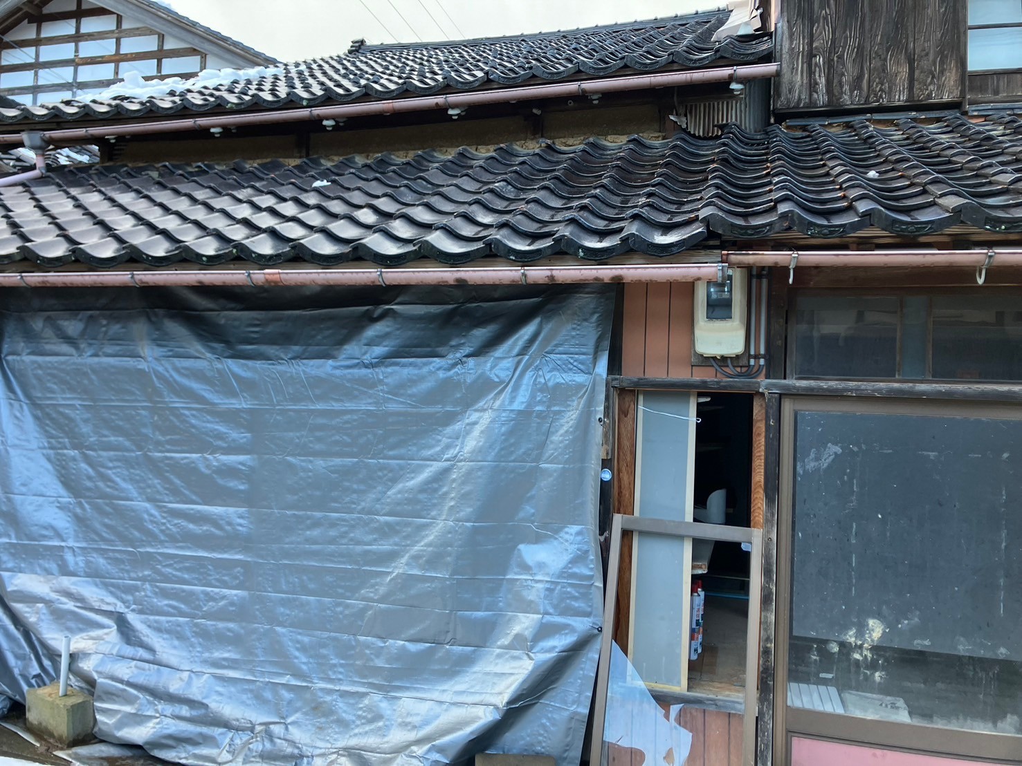 - 9月の大雨で被害を受けた状態のままの建物が見受けられた。