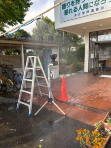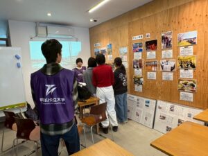 福知山公立大学まちかどキャンパス「吹風舎」で、能登半島地震における公立大学生によるボランティア活動の写真で現状を伝え、地震災害について考える時間としました。