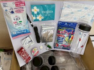 - いざという時に備えとして活用できる色々なアイテムを選び、自分の防災グッズをボトルに入れる取り組みを実施した。