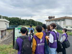 由良川沿いを歩きながら過去に起きた福知山市の水害を知り、治水について学習しました。