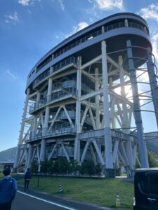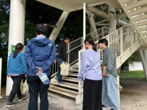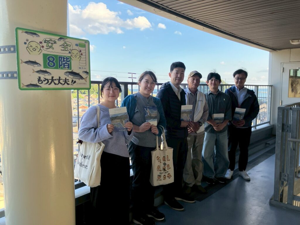 - 佐賀地区の避難タワーを見学したのが印象的でした。八階建てほどの高さがあって、登るうちに本当に“高い”と感じました。スロープと階段の両方が整備されていて、備品もきちんと揃っていて、「考えながらつくってきたんだな」と感じました。