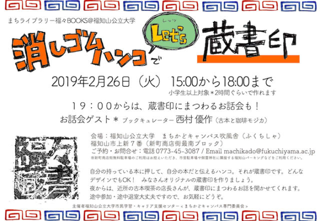 2/26【まちライブラリー福々BOOKS@福知山公立大学】消しゴムハンコでLet’s蔵書印