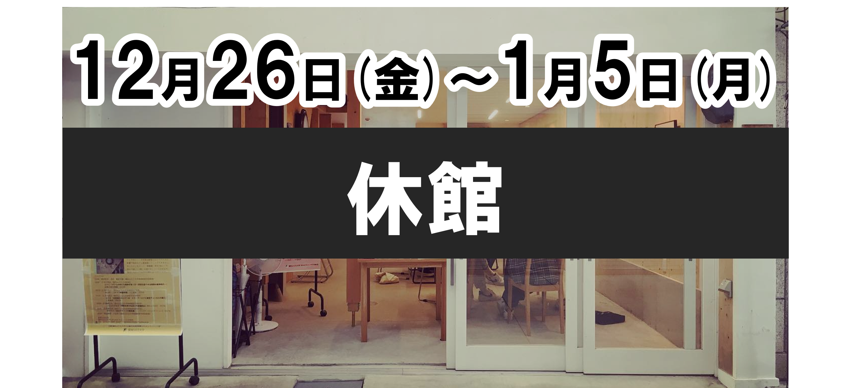 まちかどキャンパス吹風舎年末年始休館のお知らせ 2025.12.05 2025年12月26日(金)から2026年1月5日(月)は年末年始により休館とさせていただきます。 年始は1月6日(火)13時から開館しております。 皆様、良いお年をお過ごしください。 また新年から、皆様にお会いできることを楽しみにしております。 吹風舎の開館日時 火~土曜日の13~18時 土曜日は学生スタッフがいます。どんな授業を受けているのか、サークルに入っているのかなど、聞いてみてください。