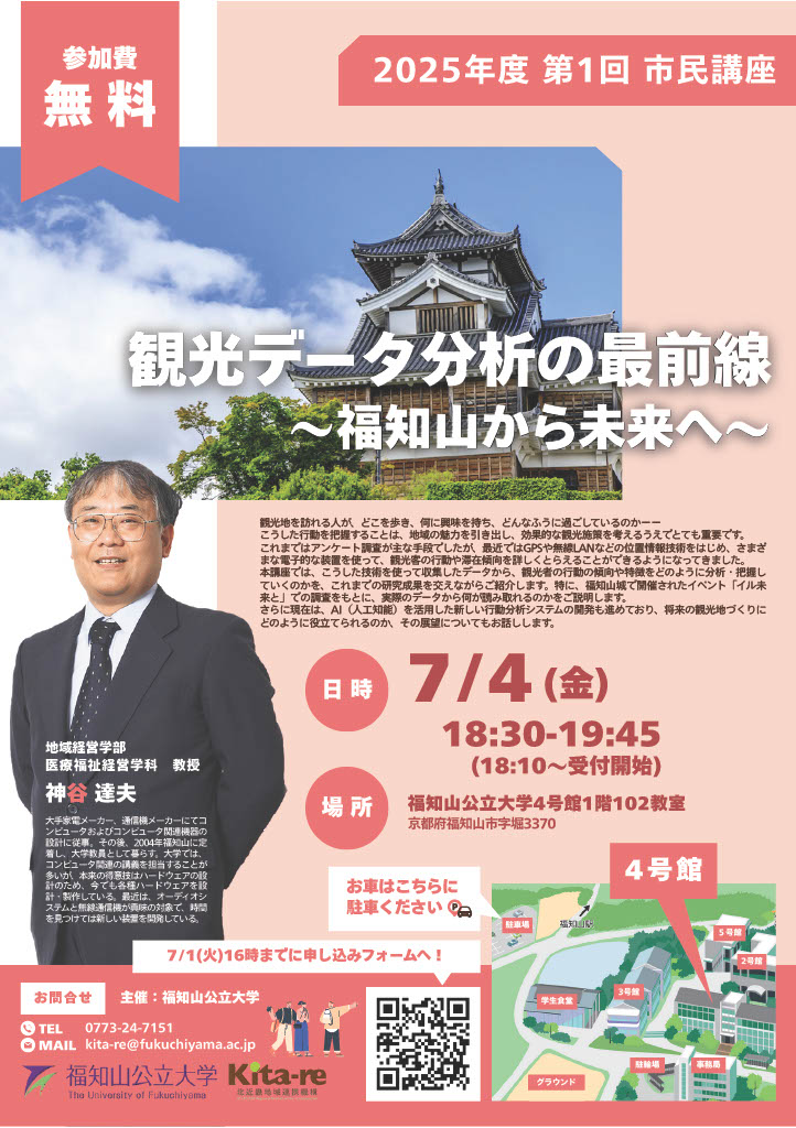2025年7月4日(金)、第1回市民講座「観光データ分析の最前線 ~福知山から未来へ~」を福知山公立大学で開催しました。