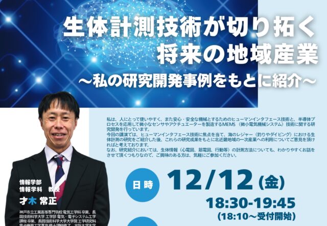 12月12日(金)に、2025年度第2回市民講座「生体計測技術が切り拓く将来の地域産業〜…