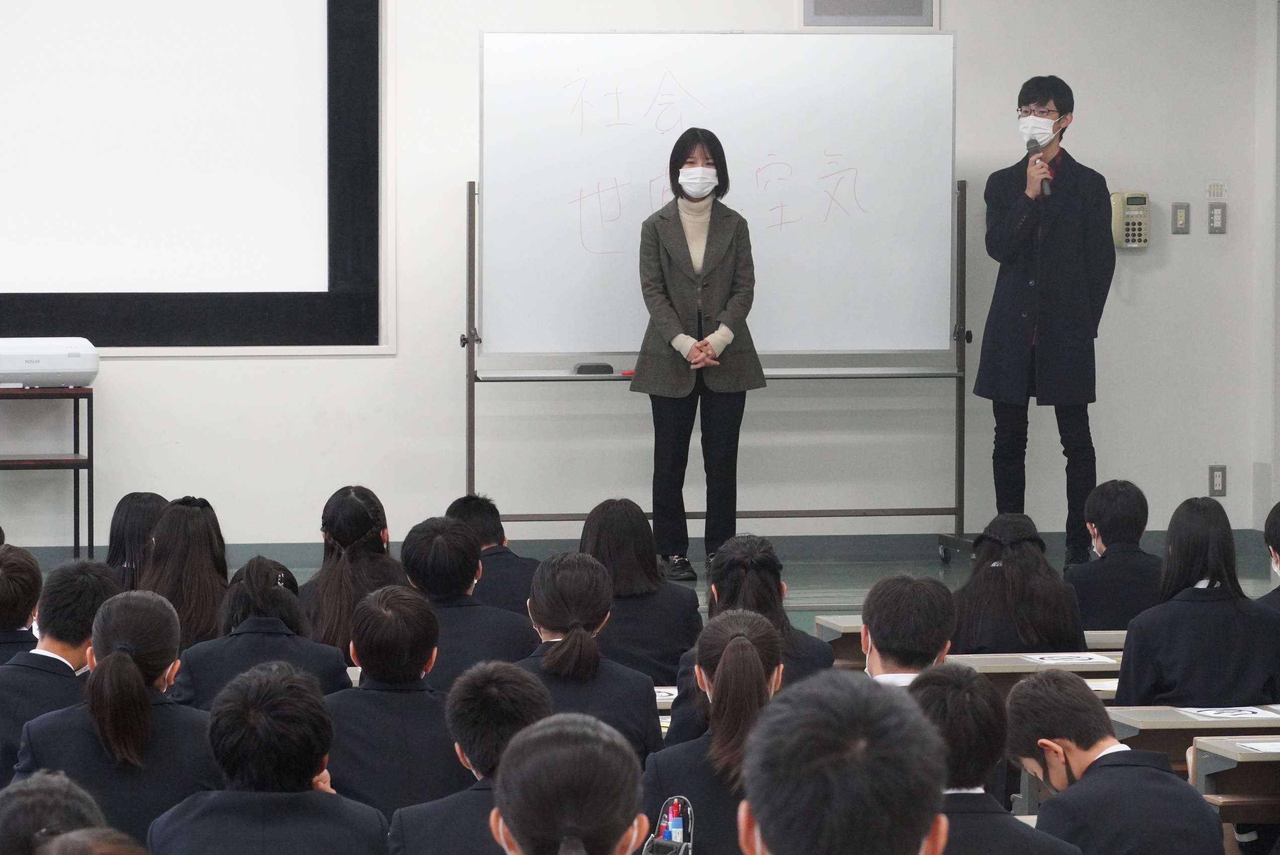 2教室に分かれて地域経営学部の谷口知弘教授による模擬講義「観光×まちづくり~シャッター商店街は地域資源の宝庫?~」と杉岡秀紀准教授による模擬講義「問いってなんだろう」を受講されたあと、それぞれの教室で地域経営学部の学生2名が大学生活や進路選択について質疑応答を行いました。