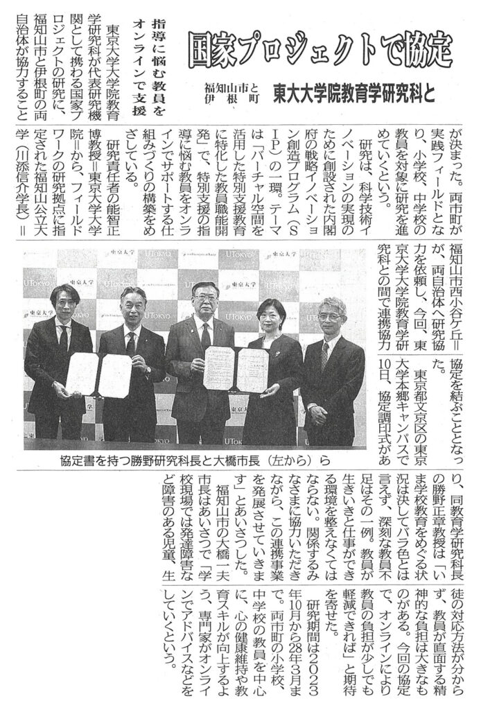 - 京都新聞 2024年4月17日(水)朝刊16面【東大・福知山公立大・福知山市・伊根町 児童・生徒への指導法悩む 教員サポート体制へ協定】