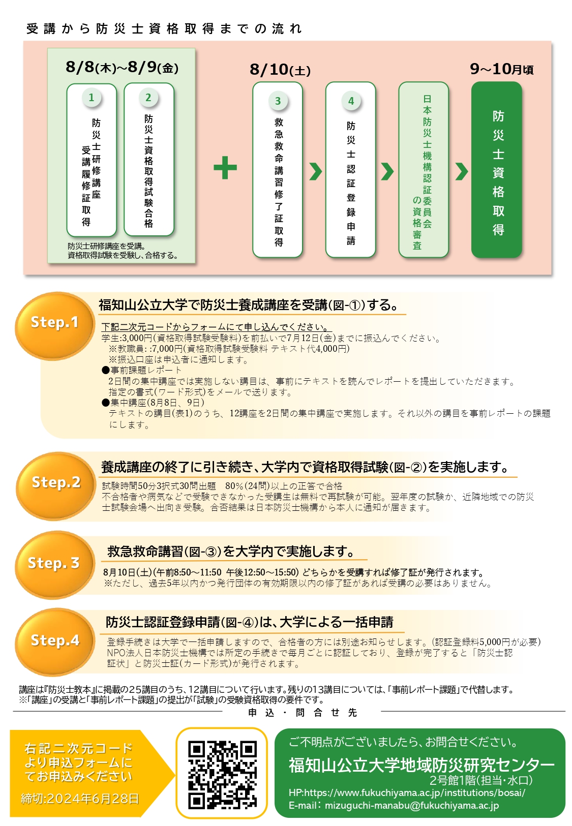 ※振込みが確認できた方に、テキスト「防災士教本」を7月上旬にお渡しします。