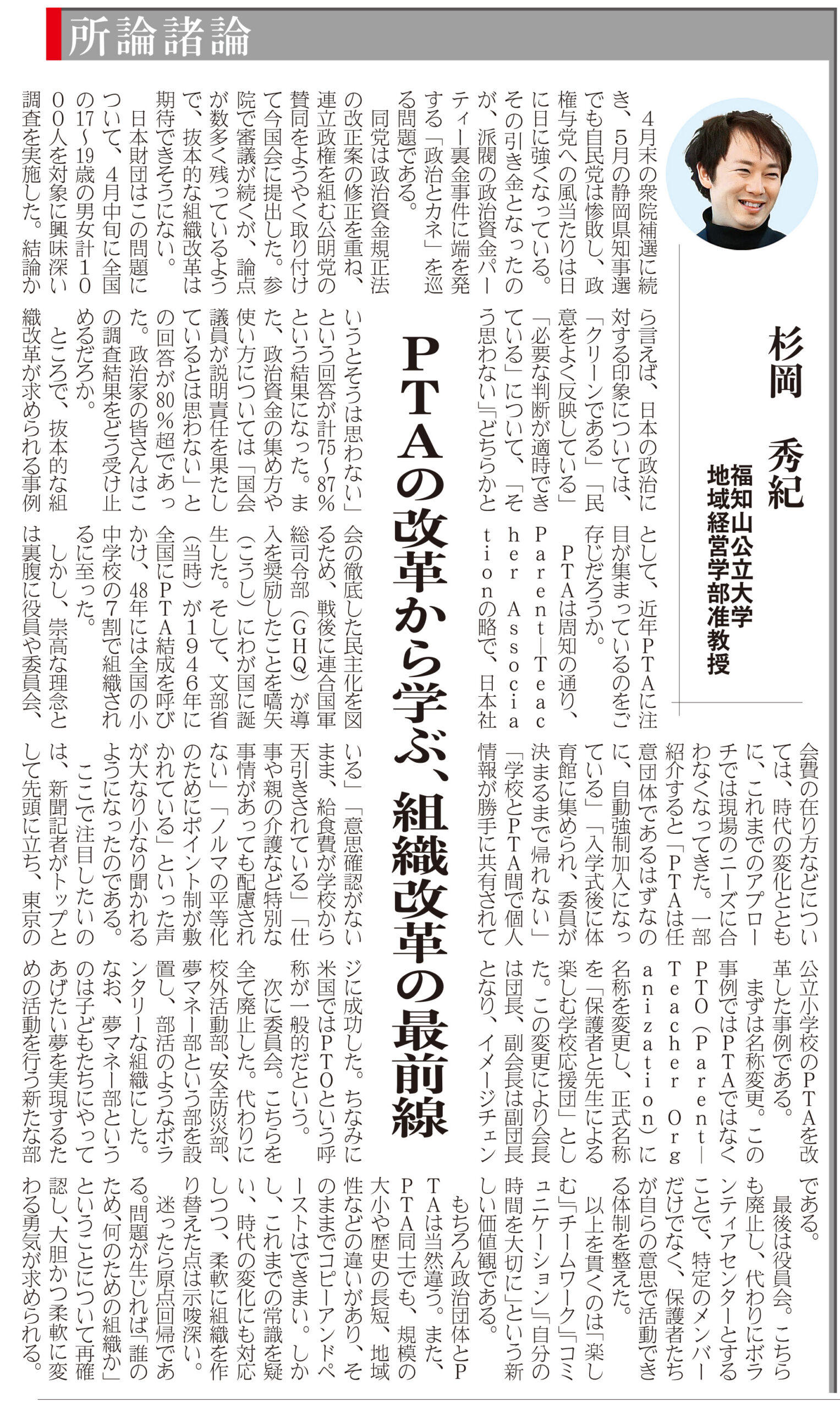 日刊建設工業新聞「所論諸論」に杉岡准教授が寄稿しました レポート 2024.06.13 日刊建設工業新聞「所論諸論」(2024年6月13日付け)に、地域経営学部・杉岡秀紀准教授が寄稿しました。 (日刊建設工業新聞社提供) 前回の記事はこちら ツイート