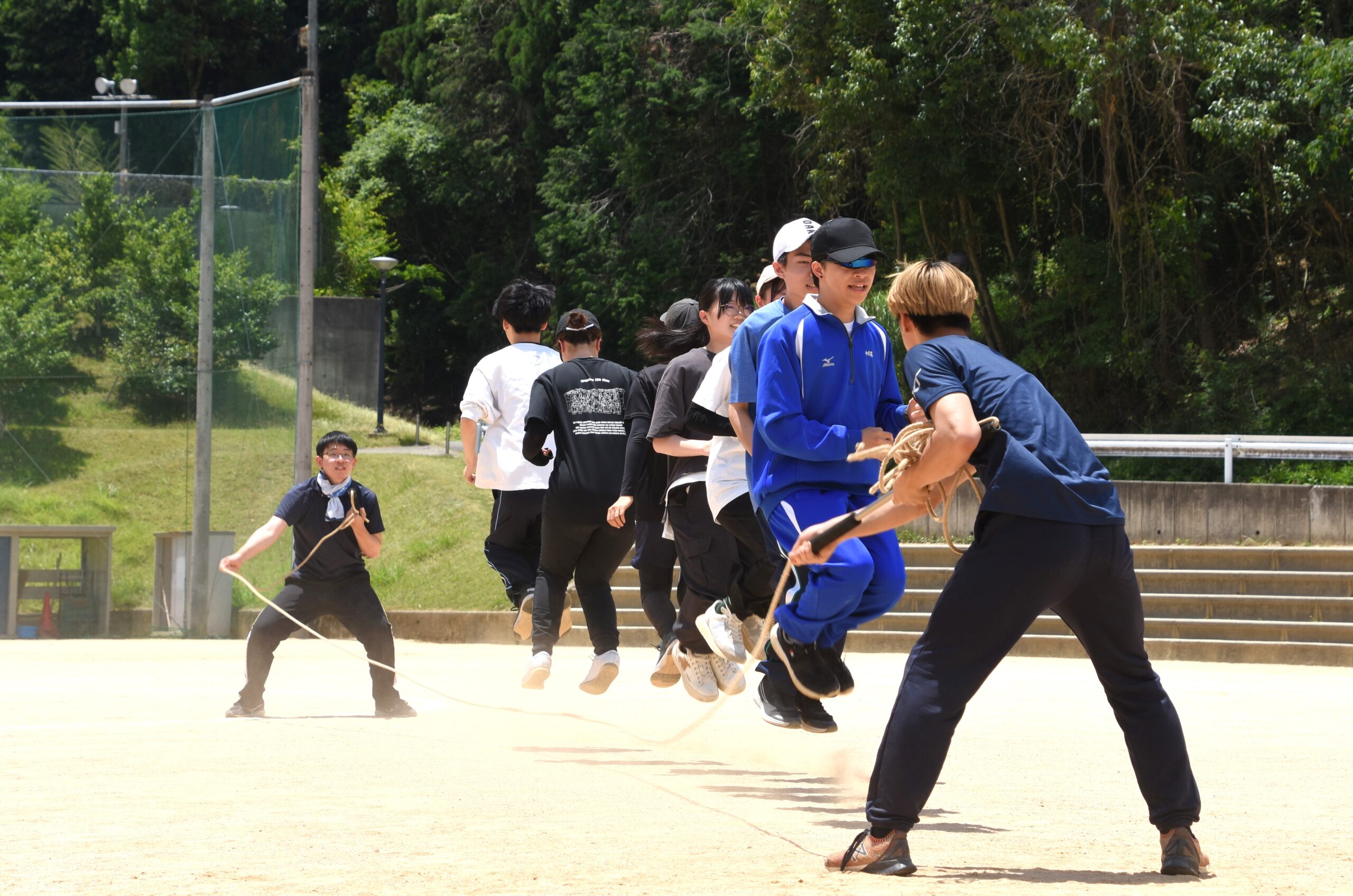 朝から天候に恵まれた当日は、学友会会長の近藤咲朱さんによる開会挨拶のあと、参加者全員でラジオ体操を行い、じゃんけん列車、玉入れ、大縄跳びの競技を行いました。