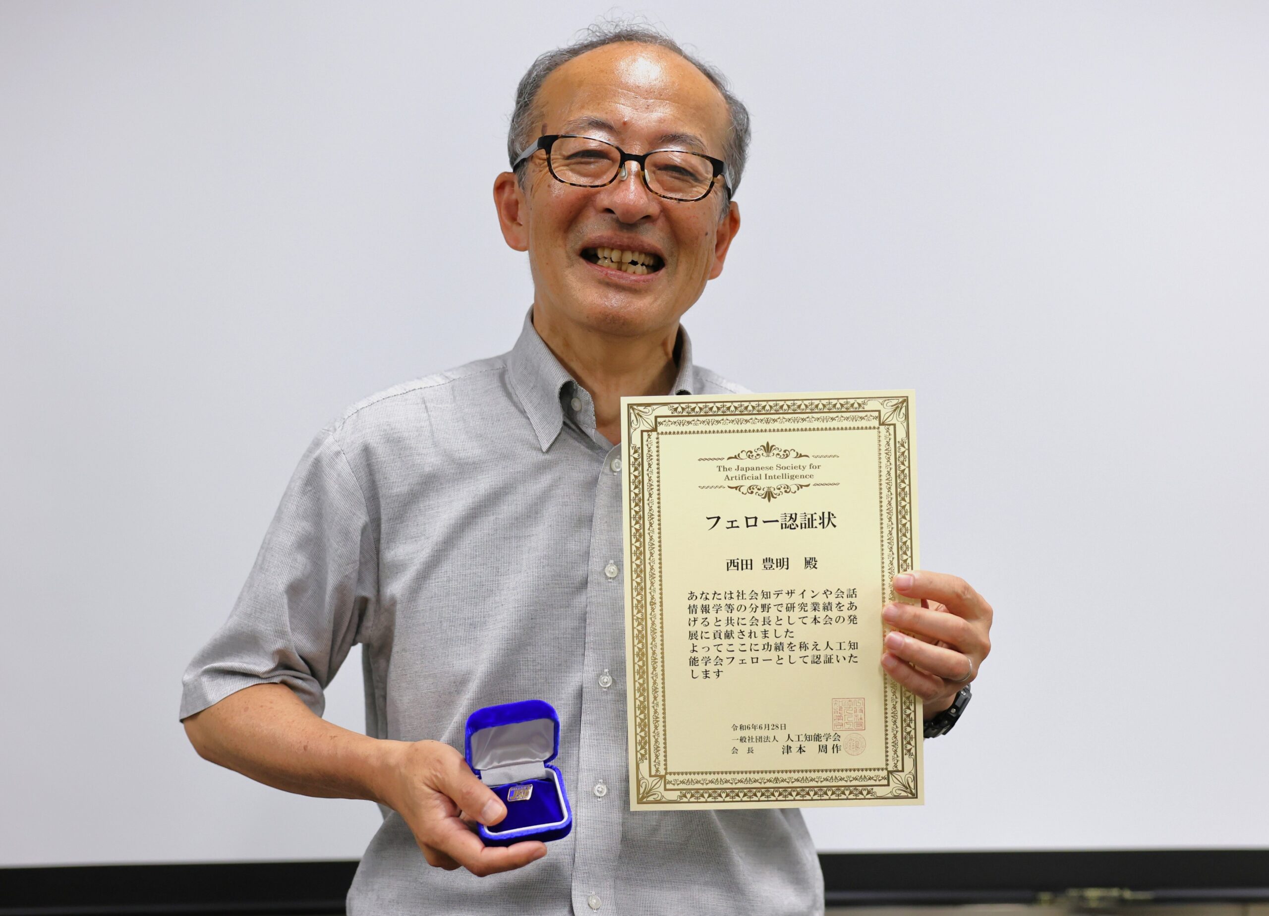2024年6月28日(金)に開催された人工知能学会の表彰式で、西田豊明副学長が人工知能学会のフェローとして認証されました。