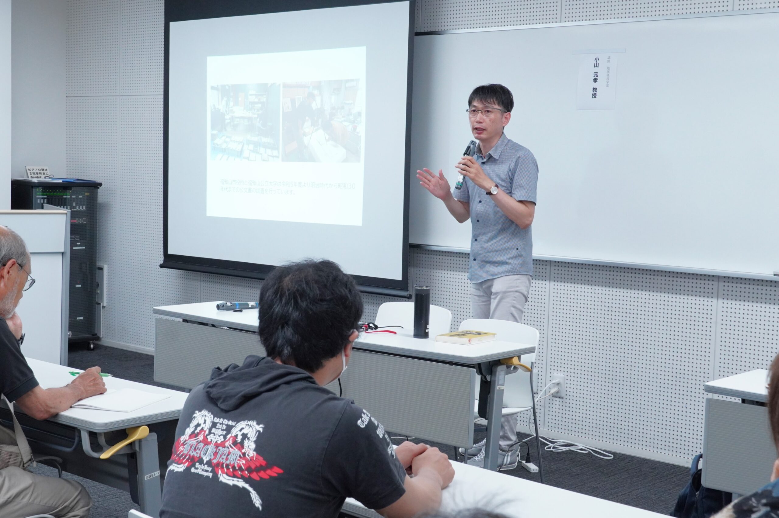 今回のテーマは、昭和初期の公文書から人々が災害時にどのような行動をとったのかを読み解くもので、地域の宗教史や歴史資料を研究対象としている、地域経営学部・小山元孝教授が講師を務め、当日は合計48人(会場:35人、オンライン:13人)の参加がありました。