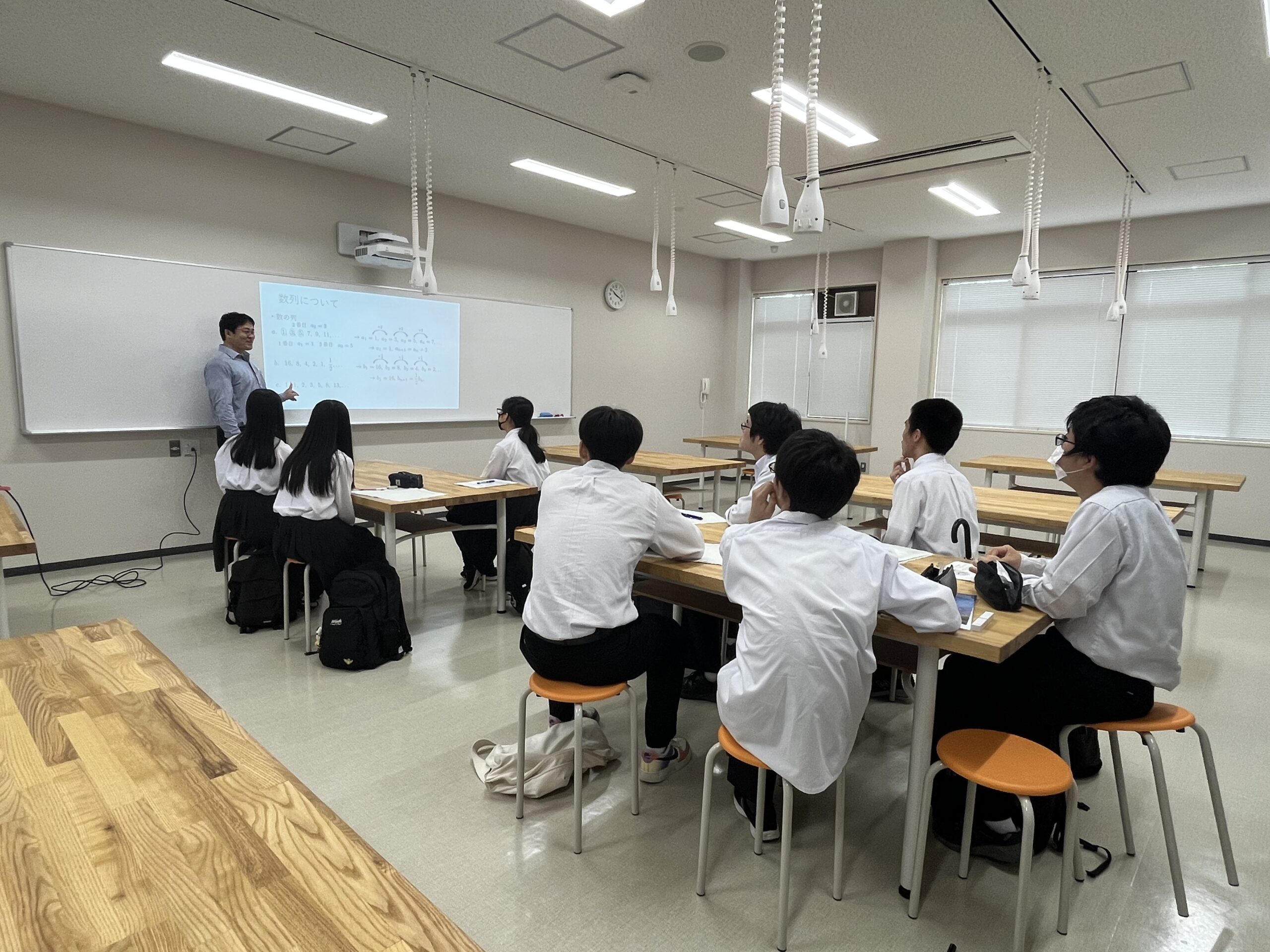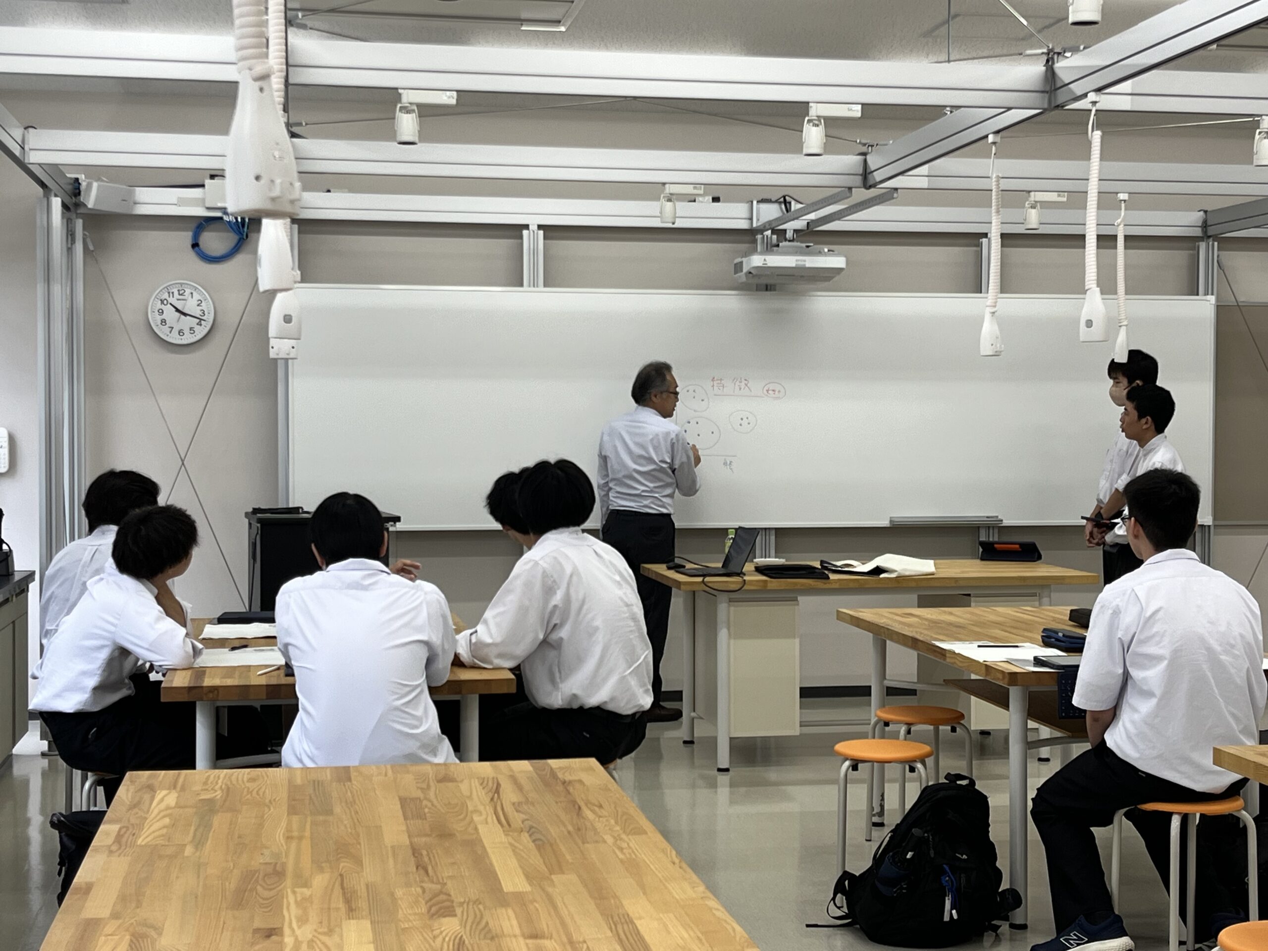 本学情報学部の特徴についてミニガイダンスを受けた後、3班に分かれて畠中利治教授(情報学部)、井上一成教授(情報学部)、成松明廣特任研究員(数理・データサイエンスセンター)による模擬講義をそれぞれ受講されました。