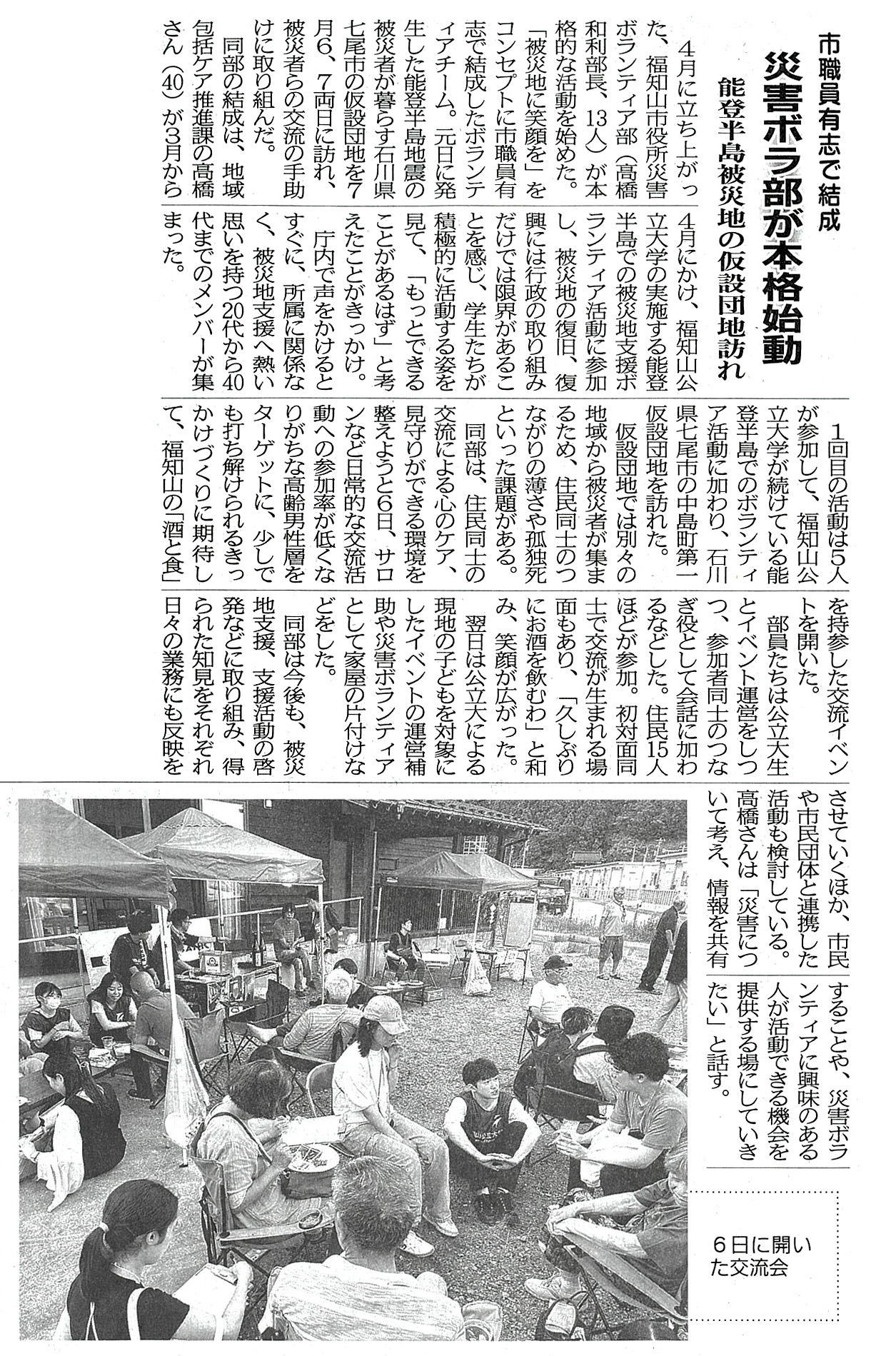 両丹日日新聞(2024月7月20日付け)、京都新聞(2024月7月23日付け)、毎日新聞(2024月7月27日付け)、朝日新聞(2024年8月25日付け)に、被災地支援に訪れていた本学学生が、福知山市役所災害ボランティア部と共にイベント運営を行ったことが紹介されました。