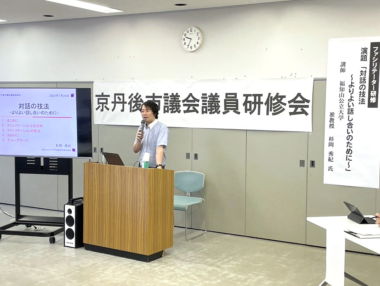 2024年7月26日(金)、京丹後市議会主催の「ファシリテーター研修」が京丹後市役所で開催され、地域経営学部の杉岡秀紀准教授が講師を務めました。