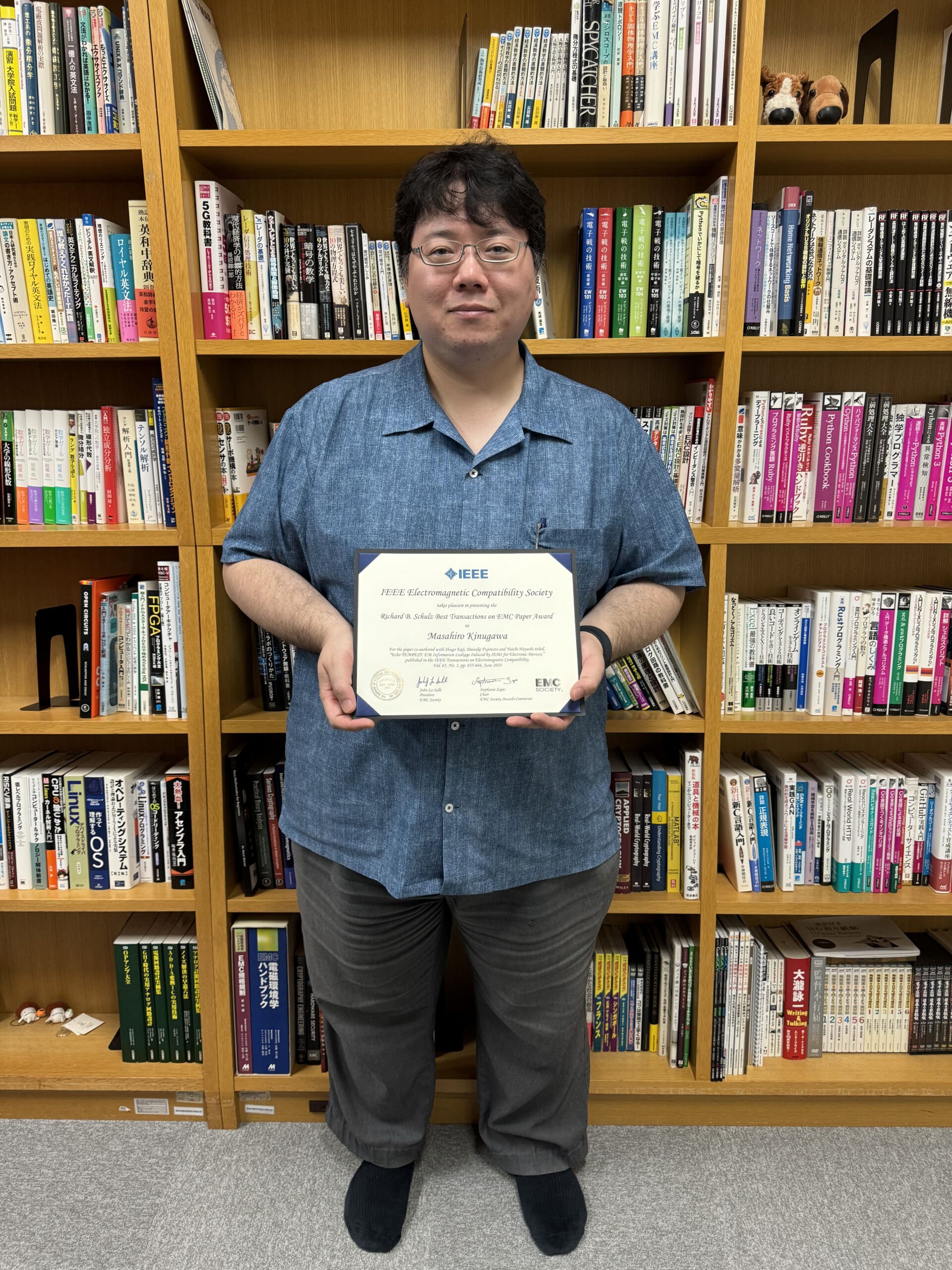 衣川昌宏准教授(情報学部)の研究グループが発表した論文が、環境電磁工学分野においての最高峰学会である IEEE EMC Society (アイ・トリプル・イー イー・エム・シー ソサイエティ(Institute of Electrical and Electronics Engineers, Electromagnetic Compatibility Society))の最優秀論文賞であるRichard B. Schulz Best Transactions Paper Awardを受賞しました。