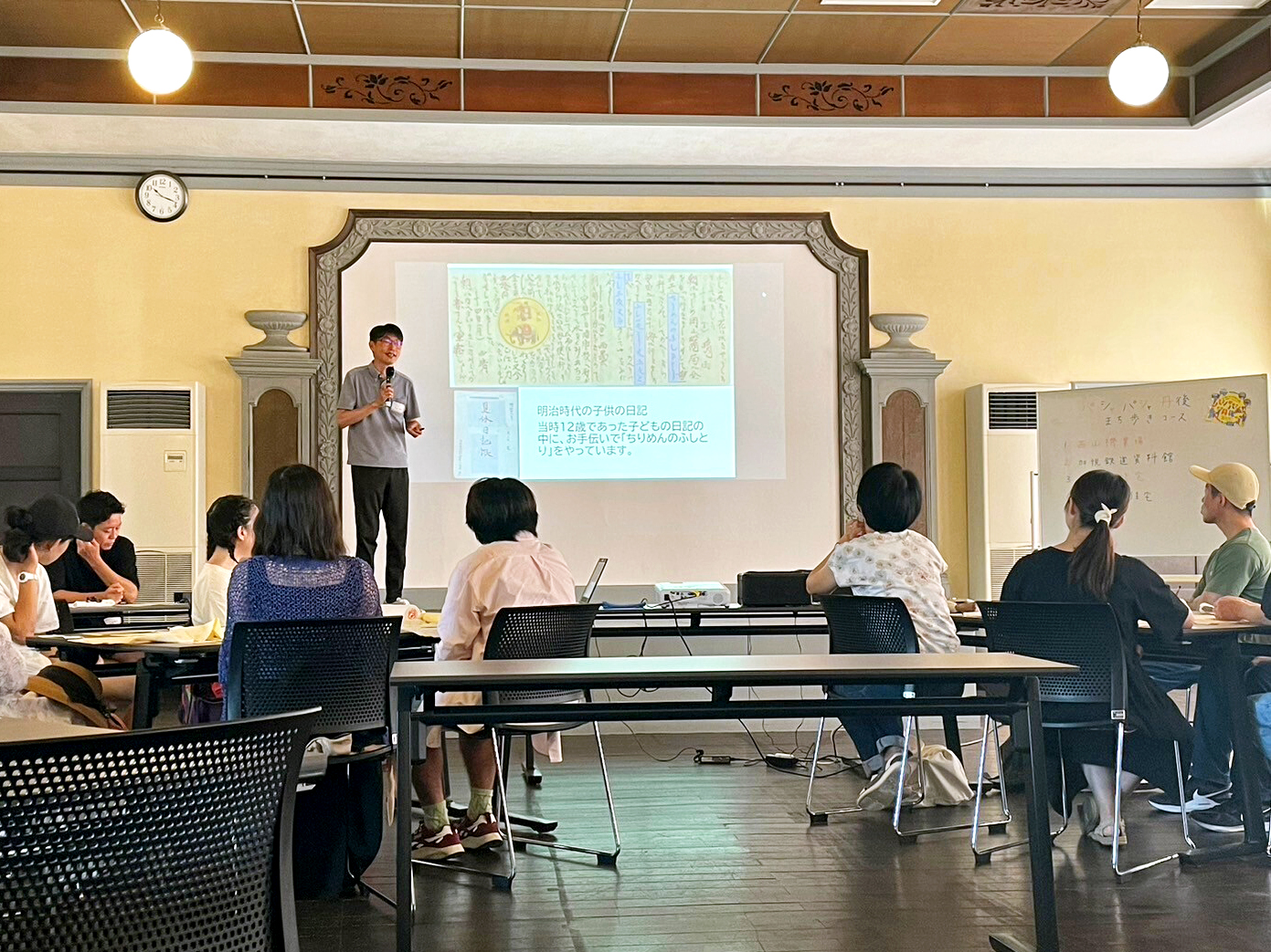 このイベントは、京都府および丹後2市2町などで構成される京都:Re-Search実行委員会が主催しており、織物の生産や流通で栄えた丹後地域を歩きながら風景を撮影し、伝統文化を再認識してもらうことを目的としています。京丹後市出身で地域史を専門とする小山教授は、織物文化に関する監修を担当しました。