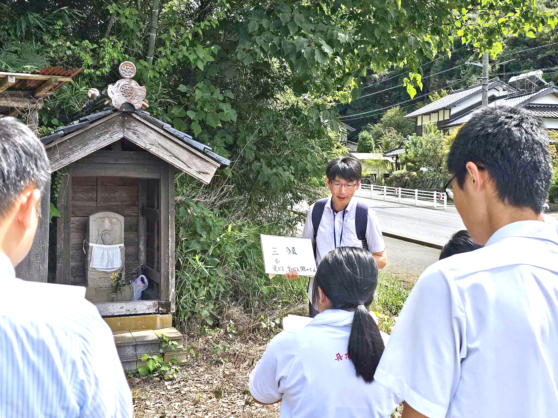 聴講した生徒たちは、熱心にメモを取ったりタブレットで写真を撮ったりして、身近にある歴史について学びを深めました。