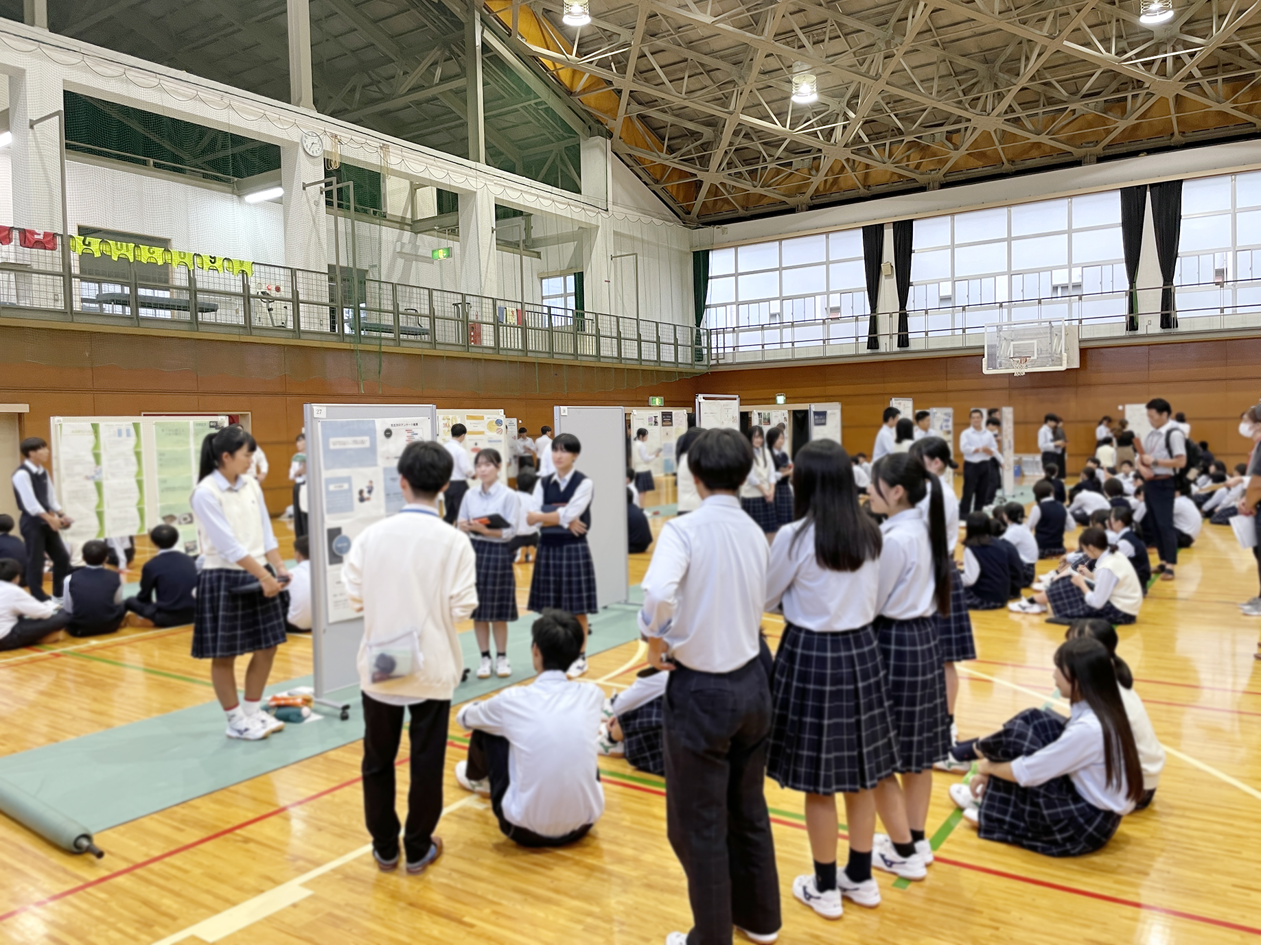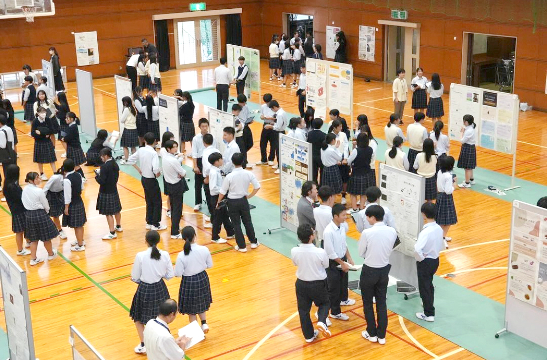 2024年10月3日(木)、京都府立宮津天橋高等学校宮津学舎の普通科2年生が実施する総合的な探究の時間「safari」の中間報告会に、地域経営学部・杉岡秀紀准教授が参席しました。この報告会では、生徒93名によるポスターを用いたプレゼンテーションやフリーディスカッションが行われました。