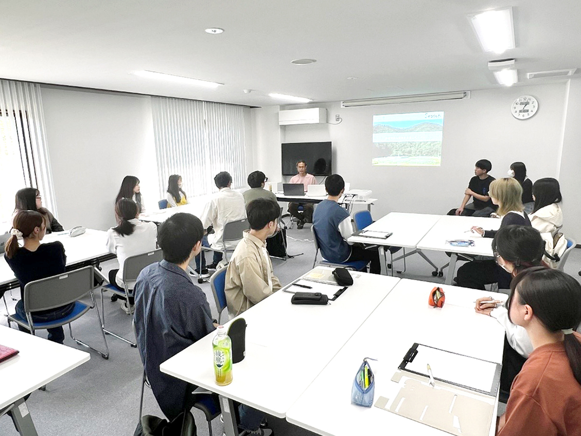 同社の久保世智社長によるゲスト講義では、移住後の起業に至るまでの経緯や、万願寺とうがらしや三和ぶどうを活かした農業ビジネスの魅力についての説明がありました。久保社長は、地域資源を最大限に活かしながら、未来へ繋ぐ農業の重要性を強調され、学生たちにとって「地域に根差した農業」の魅力を感じる貴重な機会となりました。