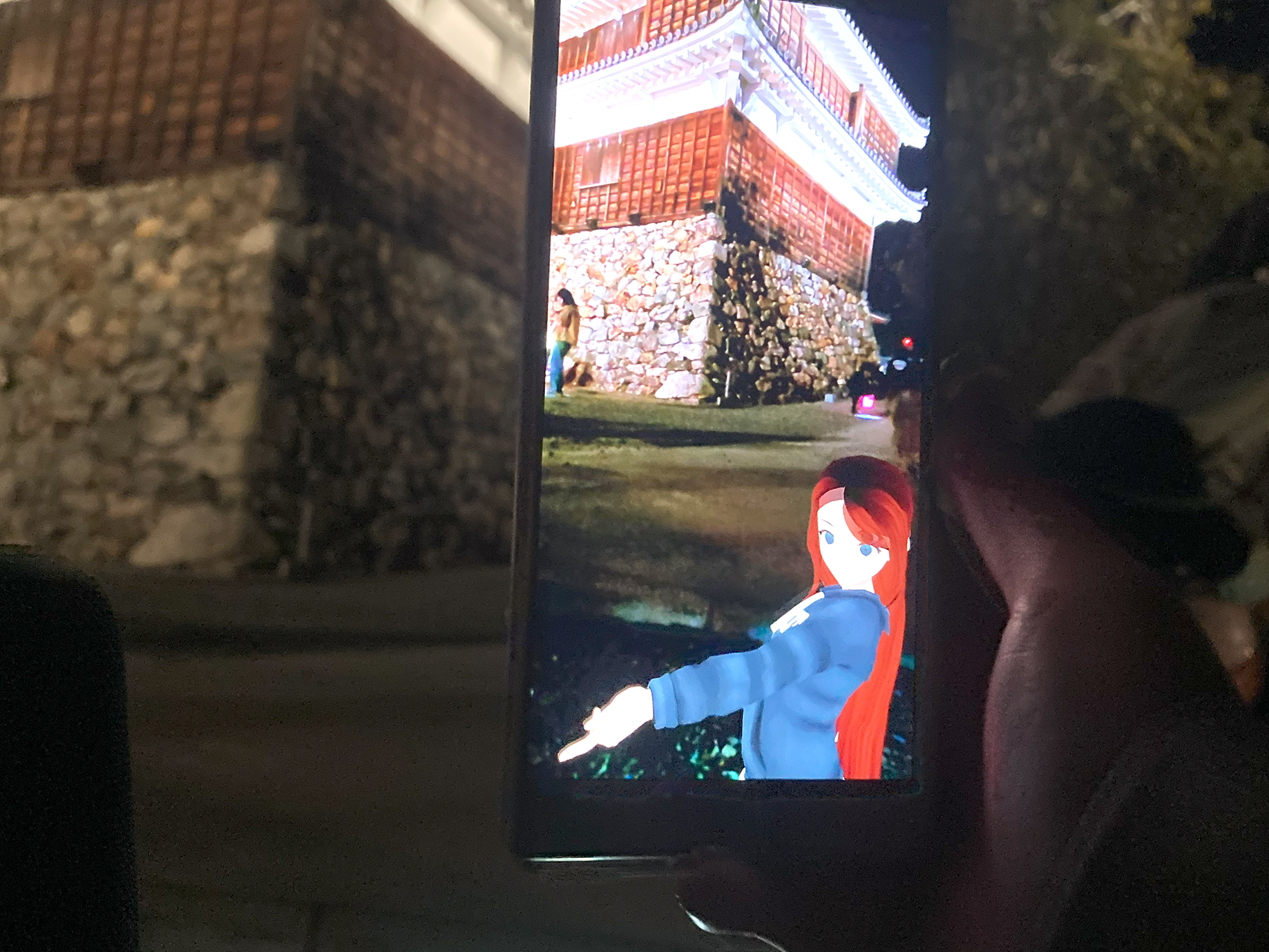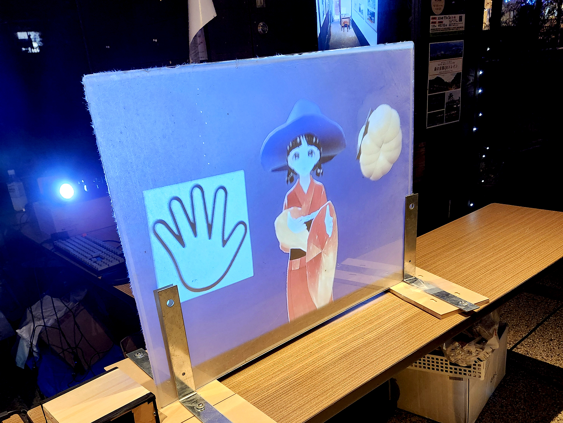 ▼ドッコちゃんの3Dモデル上映(左)、昇龍橋での和紙灯籠のイルミネーションライトアップ