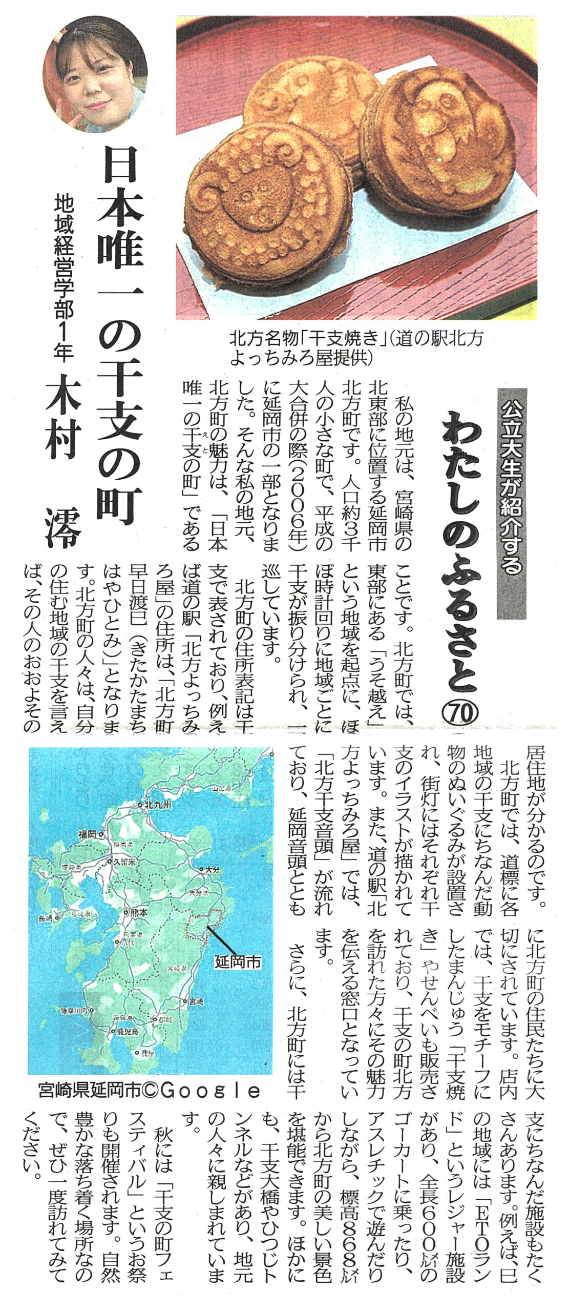 木村さんは宮崎県延岡市北方町の出身で、記事では「日本唯一の干支の町」として知られる北方町の非常にユニークな特徴について紹介しています。