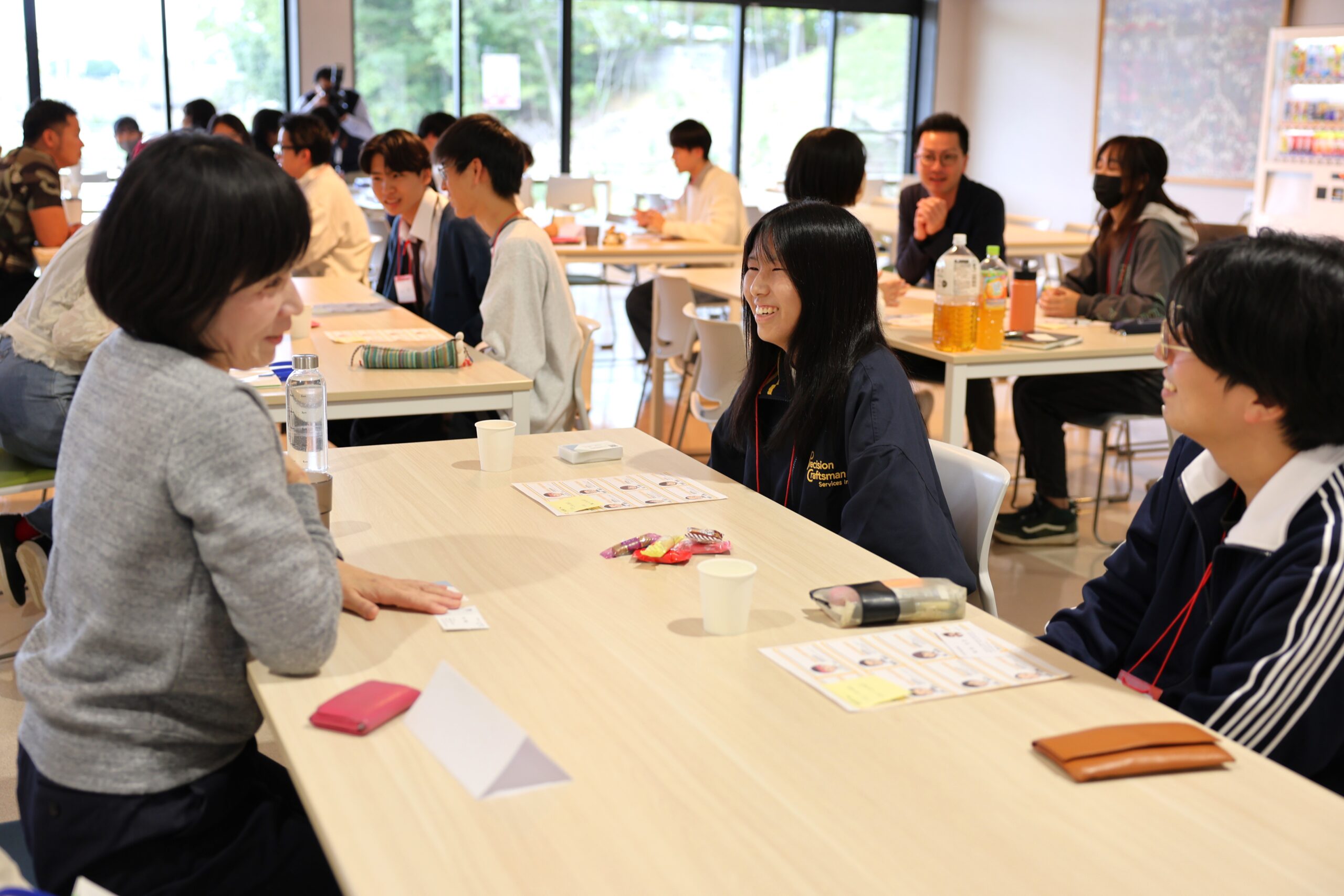 続いて、グループごとにテーマを決めずに自由な意見交換会が計2回実施され、学生たちは「どんな人が議員に向いているか」や「子育てと政治活動はどのように両立しているのか」など、積極的に質問を投げかけていました。豊岡市議会議員の荒木慎大郎氏から将来について尋ねられた学生は、「大学で様々な土地のフィールドワークを行ってきたが、意外と自分の地元のことは知らないことに気付いた。今は地元への貢献について考えている」と返答があり、荒木氏は「私の場合はジムを通じて地元への地域貢献に取り組んできたが、手段は何でもいいと思う。自分の関心のあることを通じて何ができるかを考えてもいいかもしれない」と自身のエピソードを踏まえたアドバイスがあり、学生は熱心に質問を重ねていました。