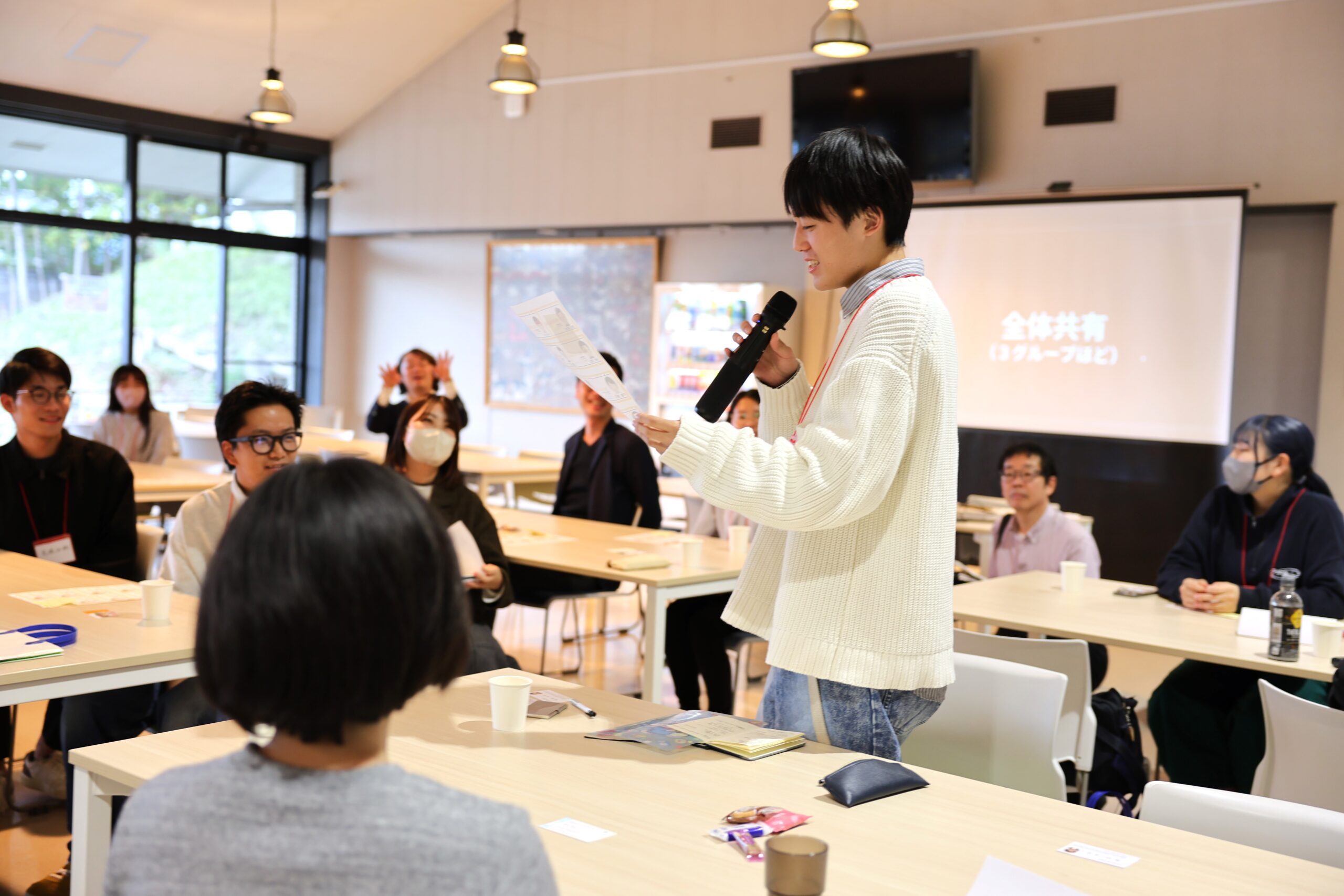 杉岡ゼミでは昨年から、自分のまちや政治に関心を持つ若者を増やしたいと「主権者教育プロジェクト」を研究の一環として取り組んでおり、大学生と政治家の交流の場をつくることを目的に本イベントが実施され、福知山市、綾部市、京丹後市、宮津市、豊岡市から計8名の市議会議員の方々が参加し、本学からも16名の学生が参加しました。