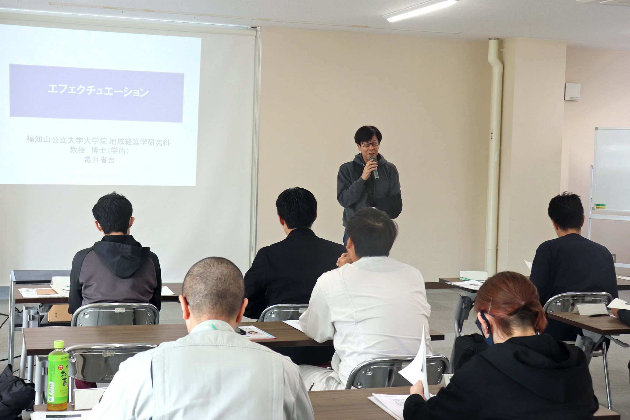 2024年10月17日(木)から11月28日(木)までの計4回にわたり、本学地域経営学部の亀井省吾教授を講師として、京都府生涯現役クリエイティブセンター主催の講座「次世代リーダーステップアップ(北部)コース」が舞鶴市勤労者福祉センターで開催されています。