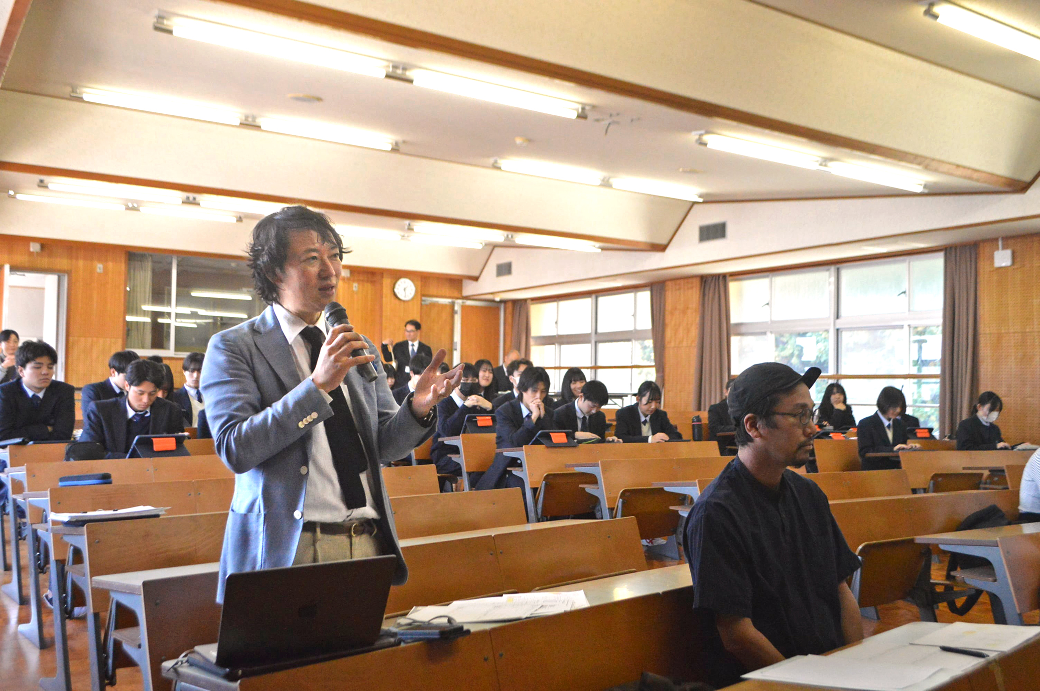 2024年11月14日(木)、京都府立宮津天橋高等学校加悦谷学舎で実施された「総合的な探究の時間」の最終発表に、地域経営学部の杉岡秀紀准教授が参加しました。この最終発表は、地域に目を向けて取り組んできたプロセスや学びを振り返り、同級生や後輩、地域の方々にわかりやすく伝えることを目的に毎回開催されています。
