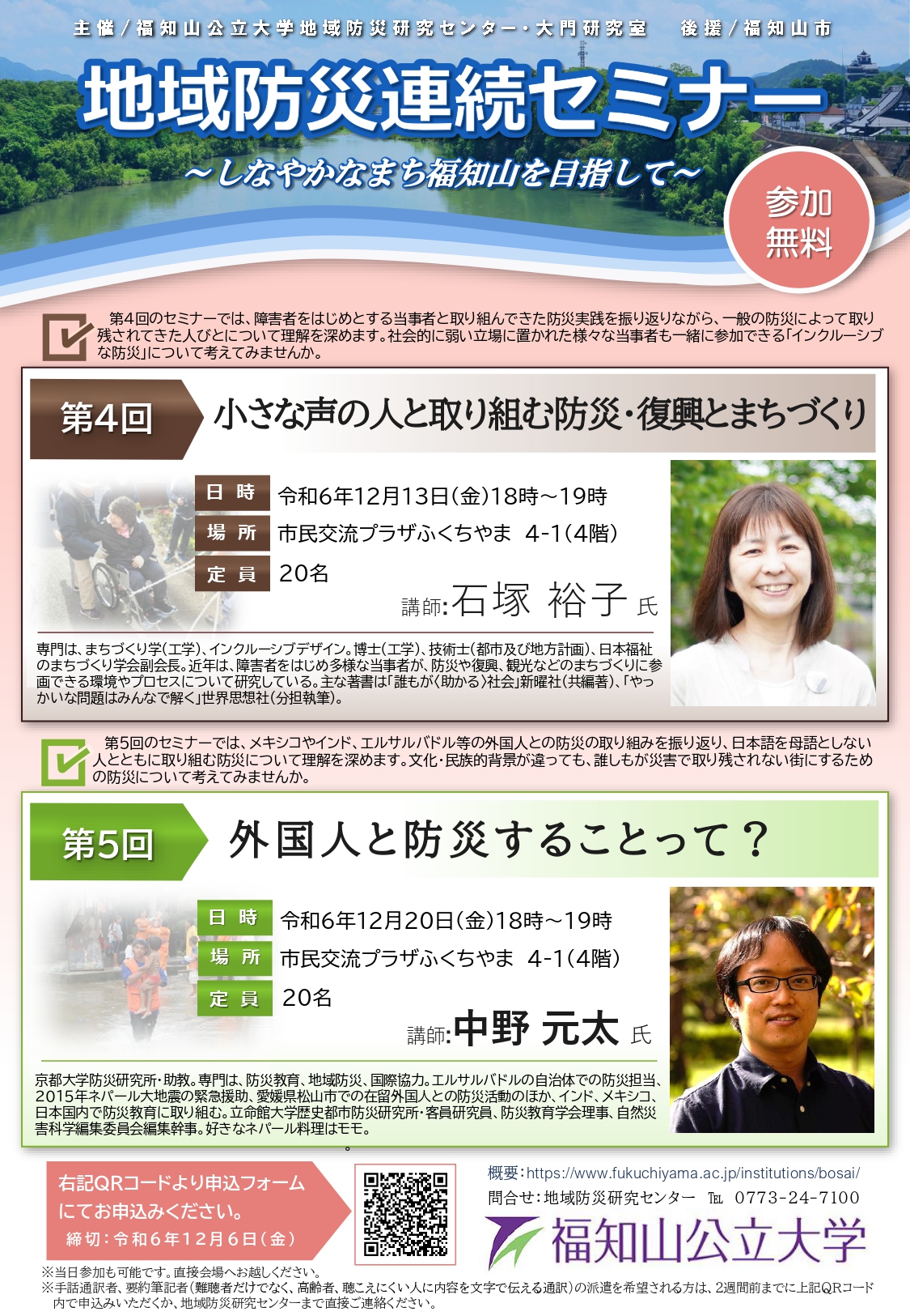 - 第4回セミナー:市民交流プラザふくちやま4階 4-1会議室(福知山市駅前町400番地)