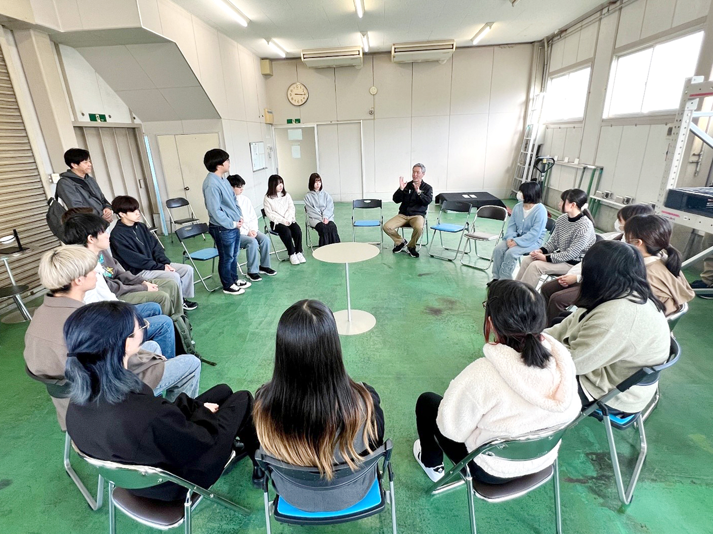 岡本社長によるゲスト講義では、事業概要や会社の発展の歴史、社会貢献などについての説明がありました。同社はアルミニウムの切削加工とアルマイト処理の両方を自社で行うことができ、業界では稀有な会社です。主要事業に加え、オープンプラットフォームを活用したデザイン家具や文具の開発、本学のNEXT産業創造プログラム参加によるペット用品の開発などを実施しています。岡本社長からは、宇宙産業への参入をはじめ、ライフスタイルの提案、社会問題の解決、地域交流、環境保全など、未来に向けた多方面への展開について熱く語っていただきました。