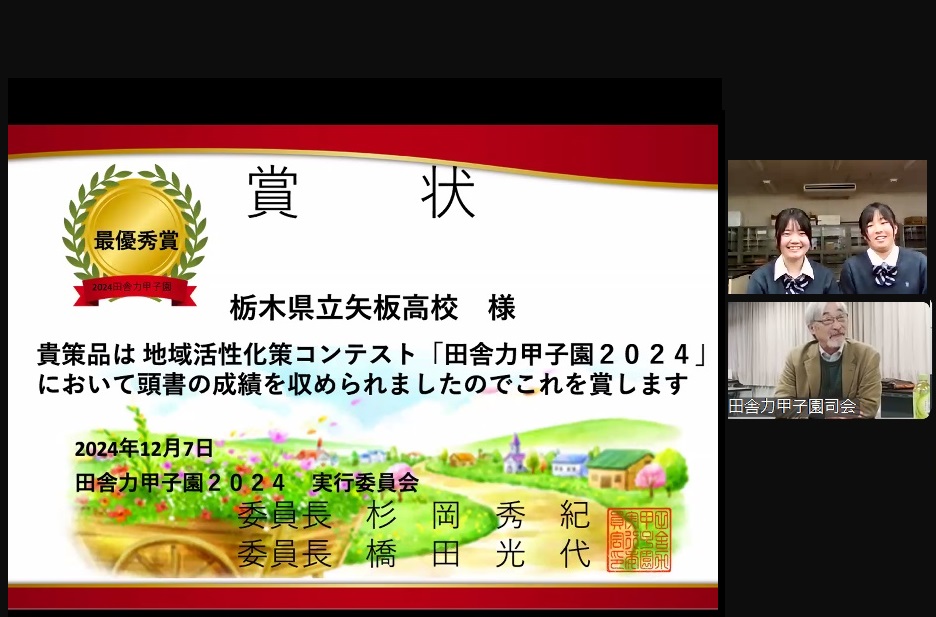 2024年12月7日(土)、田舎力甲子園実行委員会主催による地域活性化策コンテスト「田舎力甲子園2024」最終審査会がオンライン(Zoom)で実施されました。