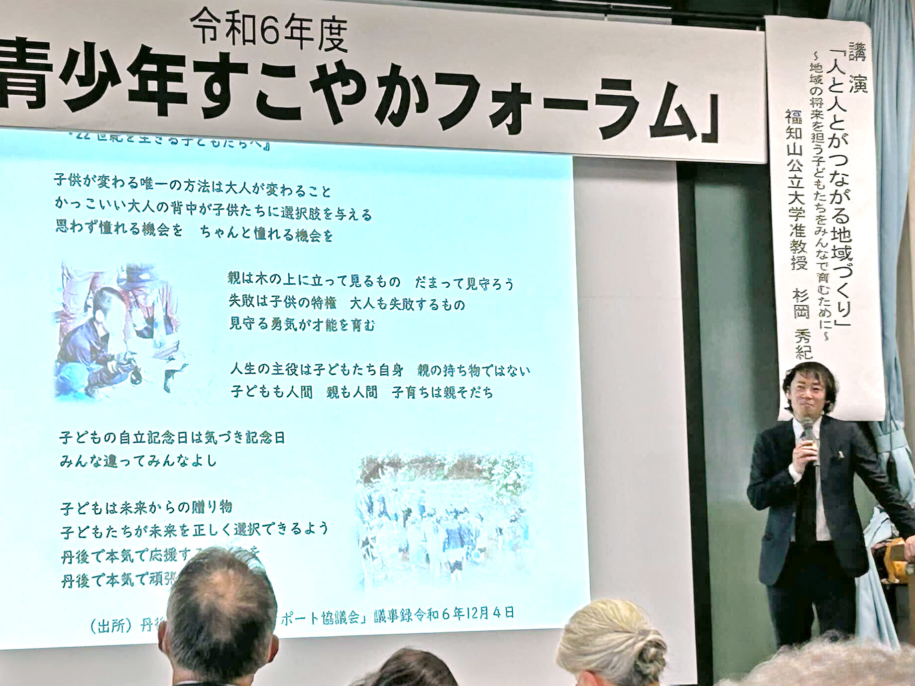 2024年12月14日(土)、「京都府青少年すこやかフォーラム」が京都府総合教育センター(京都市伏見区)で開催され、地域経営学部の杉岡秀紀准教授が登壇しました。
