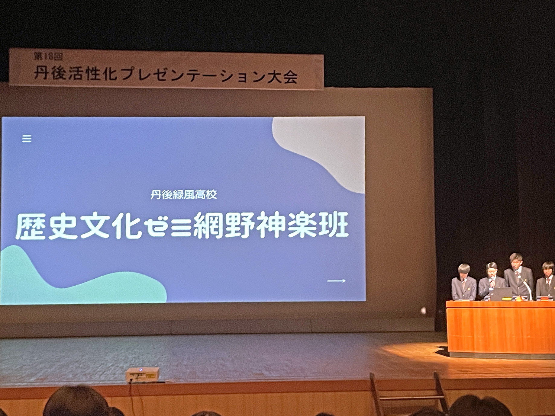 当日は、丹後緑風高校の後藤文彦校長による開会宣言、京丹後市長の中山泰氏による開会挨拶の後、普通科1・2年生による「総合的な探究の時間」の発表、企画経営科2年生による取り組み発表、同3年生による丹後活性化案の発表、普通科3年生による「総合的な探究の時間」の発表と、合計16本の探究学習や課題研究の成果が発表されました。