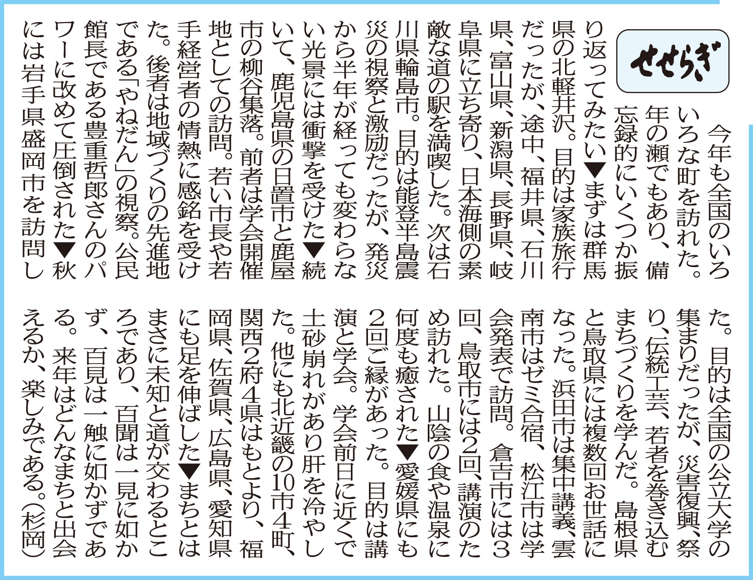 北近畿経済新聞「せせらぎ」に杉岡准教授が寄稿しました レポート 2024.12.21 北近畿経済新聞「せせらぎ」(2024年12月21日付け)に地域経営学部・杉岡秀紀准教授が寄稿しました。 (北近畿経済新聞社提供) 前回の記事はこちら ツイート
