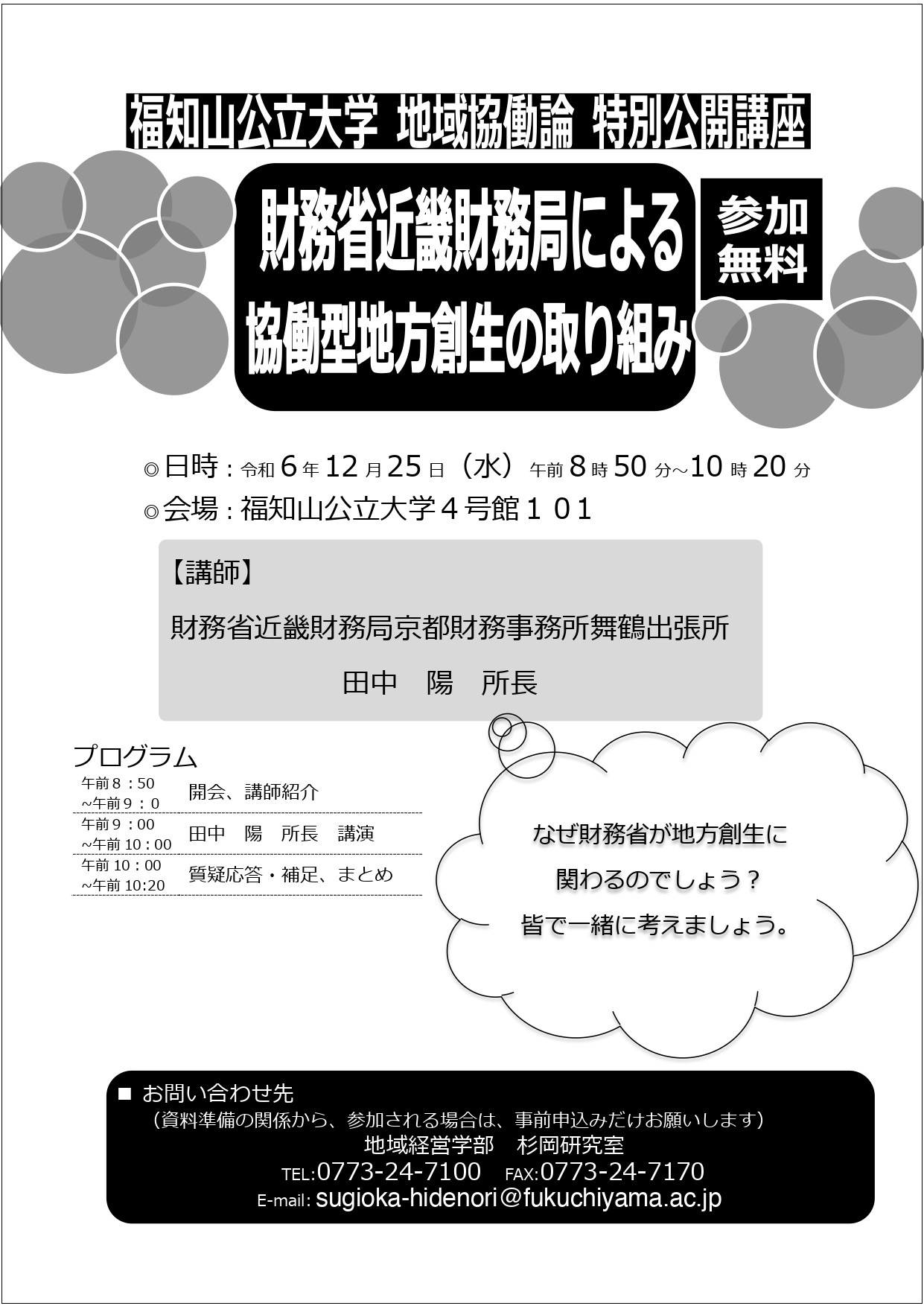 2024年12月25日(水)に特別公開講座「財務省近畿財務局による協働型地方創生の取り組み」を開催いたします。