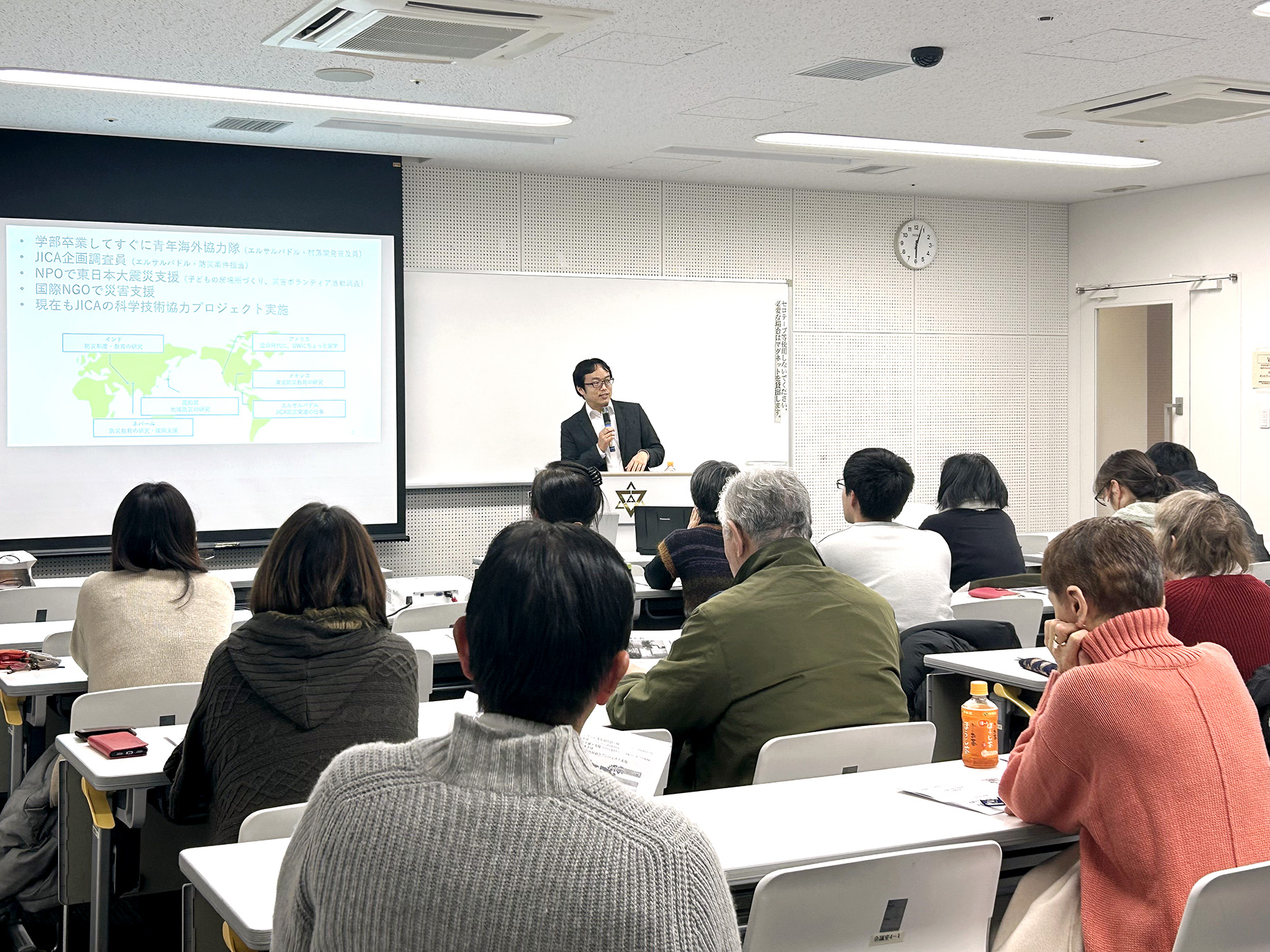 当日は、京都大学防災研究所の中野元太氏を講師に迎え、「外国人と防災することって?」をテーマに、外国での防災活動と、外国人と共に行う日本での防災活動という2つの側面について、事例を交えながらお話しいただきました。