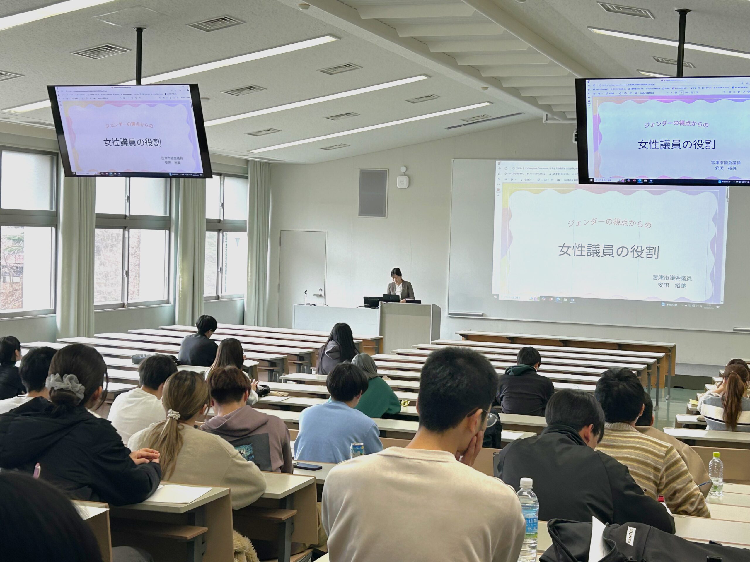 2025年1月24日(金)、地域経営学部の講義科目「グローカル特別講義Ⅳ(ジェンダー)」(担当:川島典子教授)では、宮津市議会議員の安田裕美氏をゲスト講師に招聘しました。