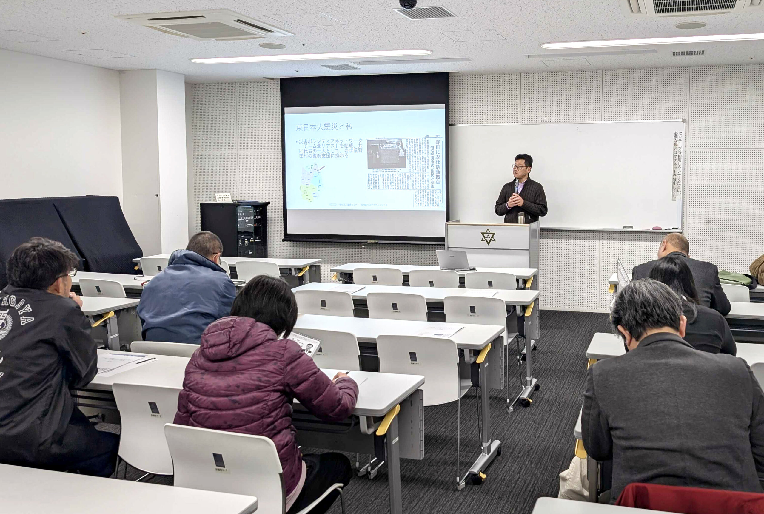 永田氏は、支援と受援の関係は一方的なものではなく、相互に学び合いながら構築していくことが重要であるとし、被災地で得られた知見が今後の防災・復興施策にも活かせる可能性について言及されました。本セミナーは、災害復興に対する理解を深める貴重な機会となりました。