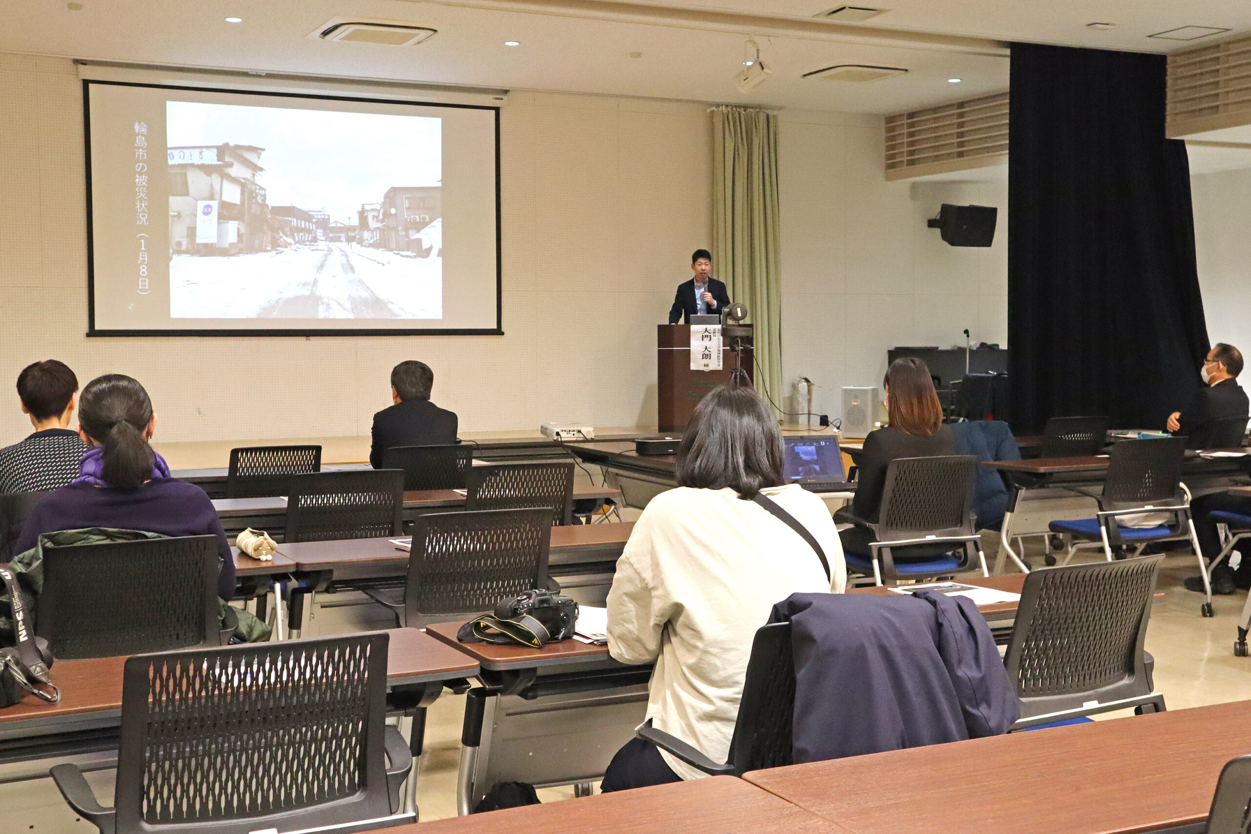大門准教授は、能登半島地震発生直後から被災地を何度も訪れボランティア活動を続けてきましたが、時間の経過とともに被災地の課題も変化しており、長期化する避難生活や新たな住居確保への不安など、依然として多くの課題が山積していると説明しました。