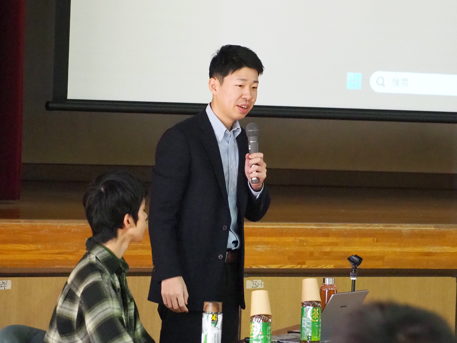 その後、本学のSTL助成金採択プロジェクト「七福ふっこう隊」のメンバーである石田浩祐さん(医療福祉経営学科3年)が、能登半島でボランティア活動を行う当団体の活動目的や内容について説明を行いました。