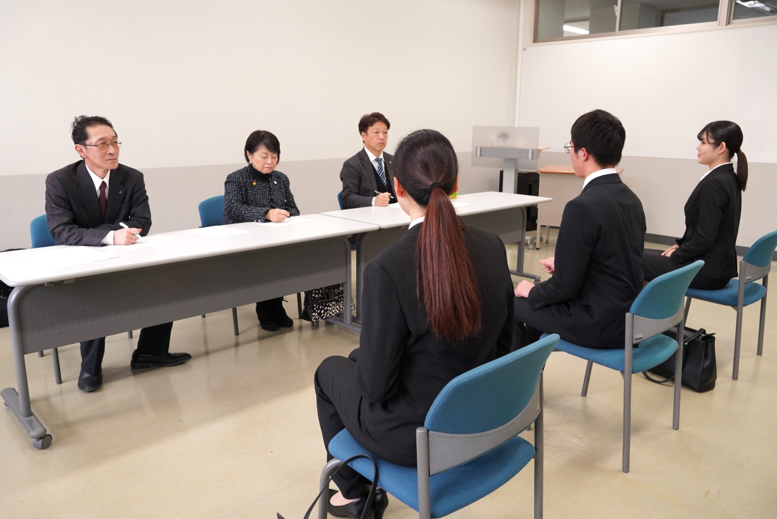 集団面接の後には個人面接が実施され、面接官は集団面接の時よりも深い内容に触れ、企業や自分のやりたい仕事について質問し、学生からは「対面の面接の雰囲気が体験でき、いい機会だった」と感想がありました。