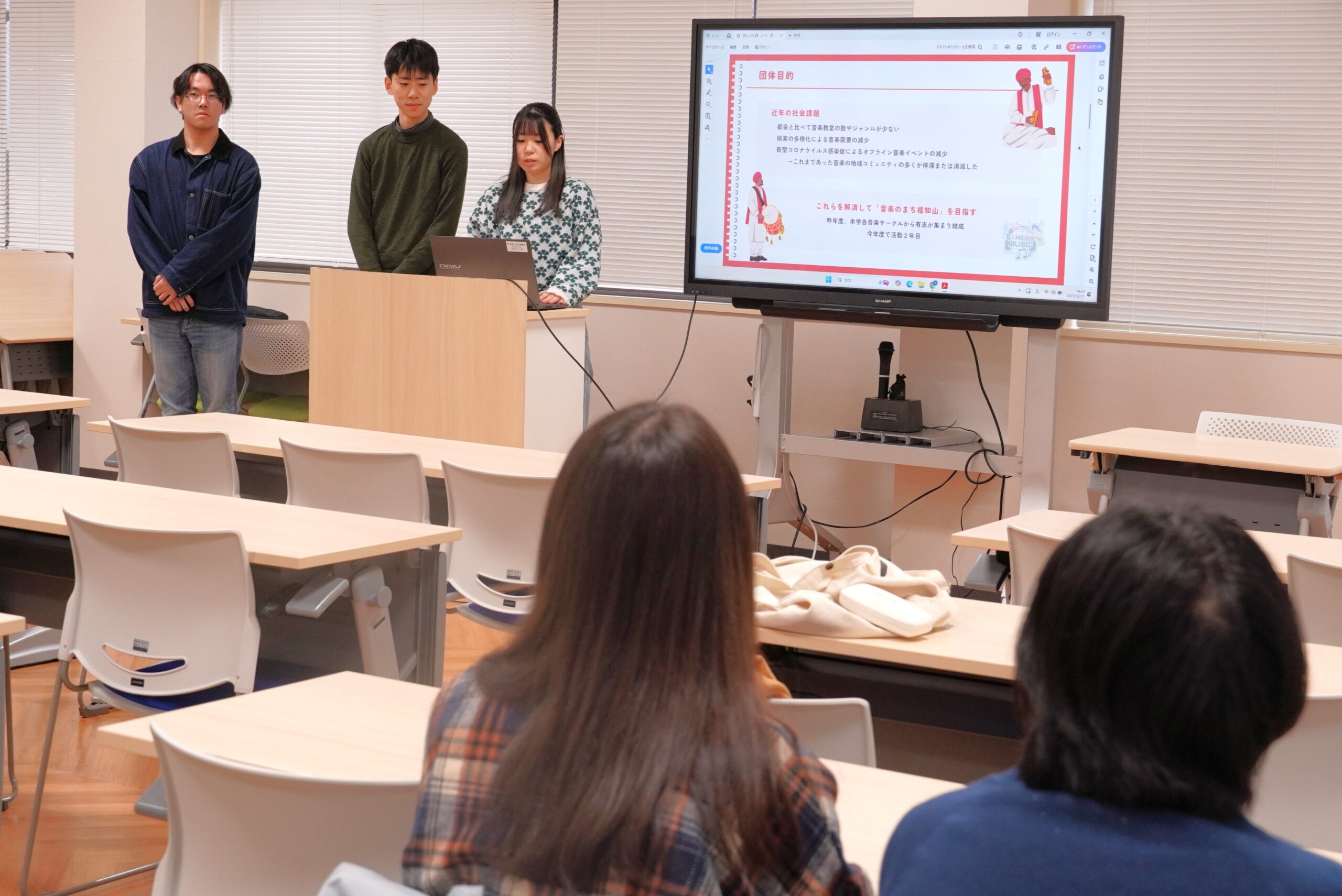会場に訪れた教職員や学生の参加者に向けて、各団体から団体概要や目的、本年度の活動内容、今後の課題・展望、収支報告などの説明を行い、その後質問に応じました。