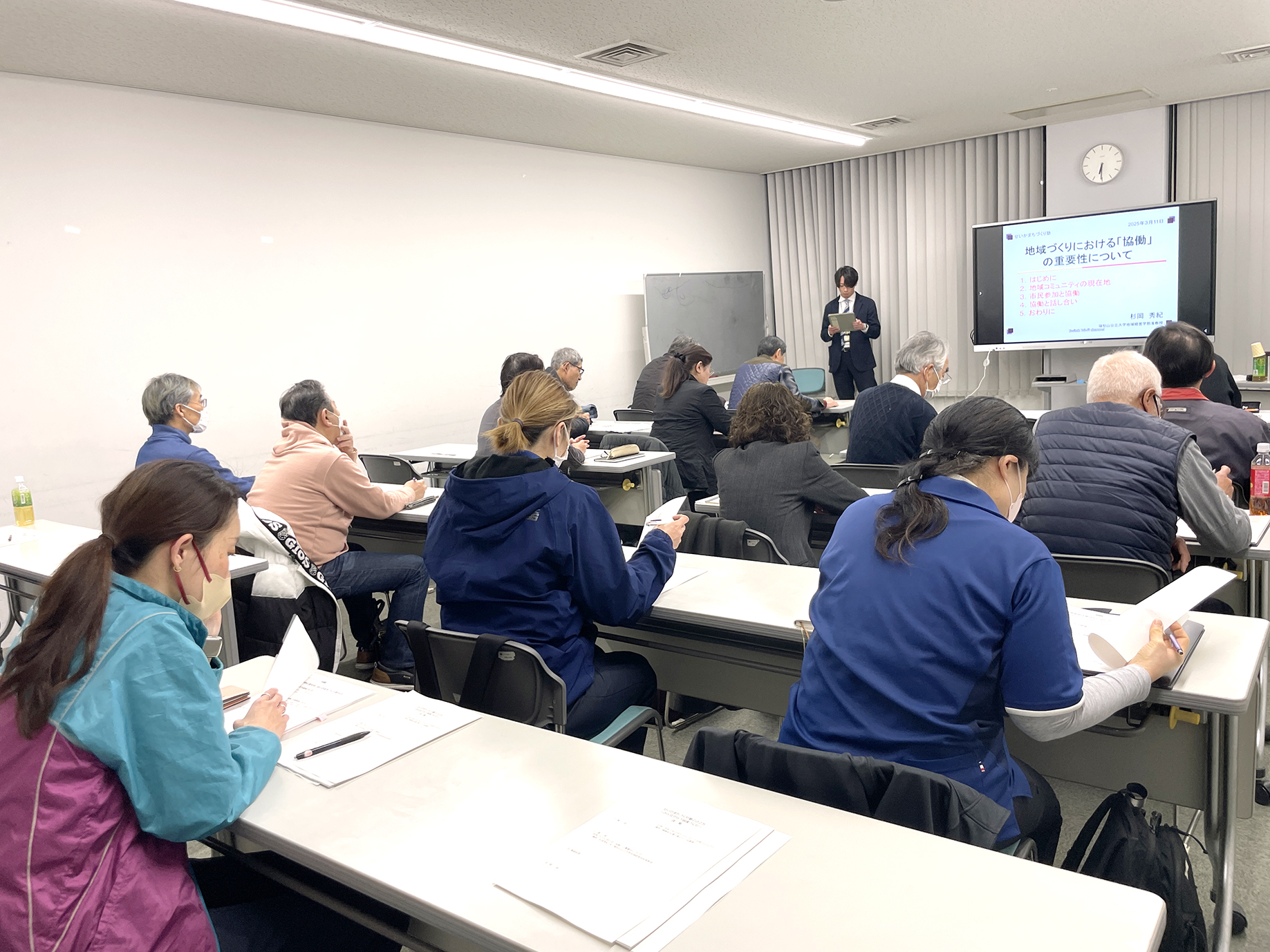 2025年3月11日(火)、精華町(京都府相楽郡)主催の「せいかまちづくり塾2025―みんなで行う地域づくり―」が精華町役場にて開催され、地域経営学部の杉岡秀紀准教授が登壇しました。この塾は、町内でまちづくり活動や地域活動に取り組もうとされている方、すでに活動している方や団体を対象に、町が主催するものです(定員約30名)。