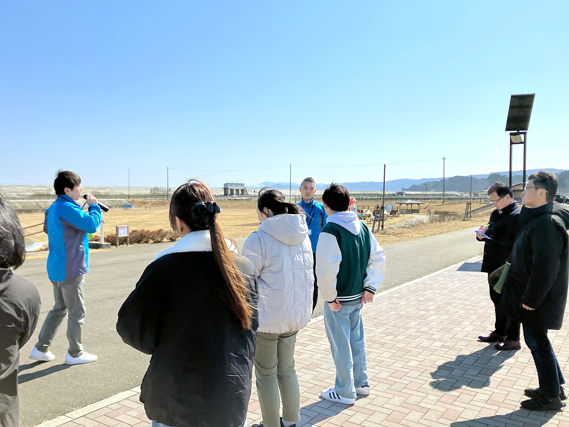 翌3月10日(月)には、野田村の復興状況について野田村役場職員の案内のもと、視察を行いました。被災直後の状況に加え、野田漁港でのホタテ養殖の取り組みなど生業の再生、高台移転による復興事業など、この14年間で進められてきた復興の歩みについて理解を深めることができました。