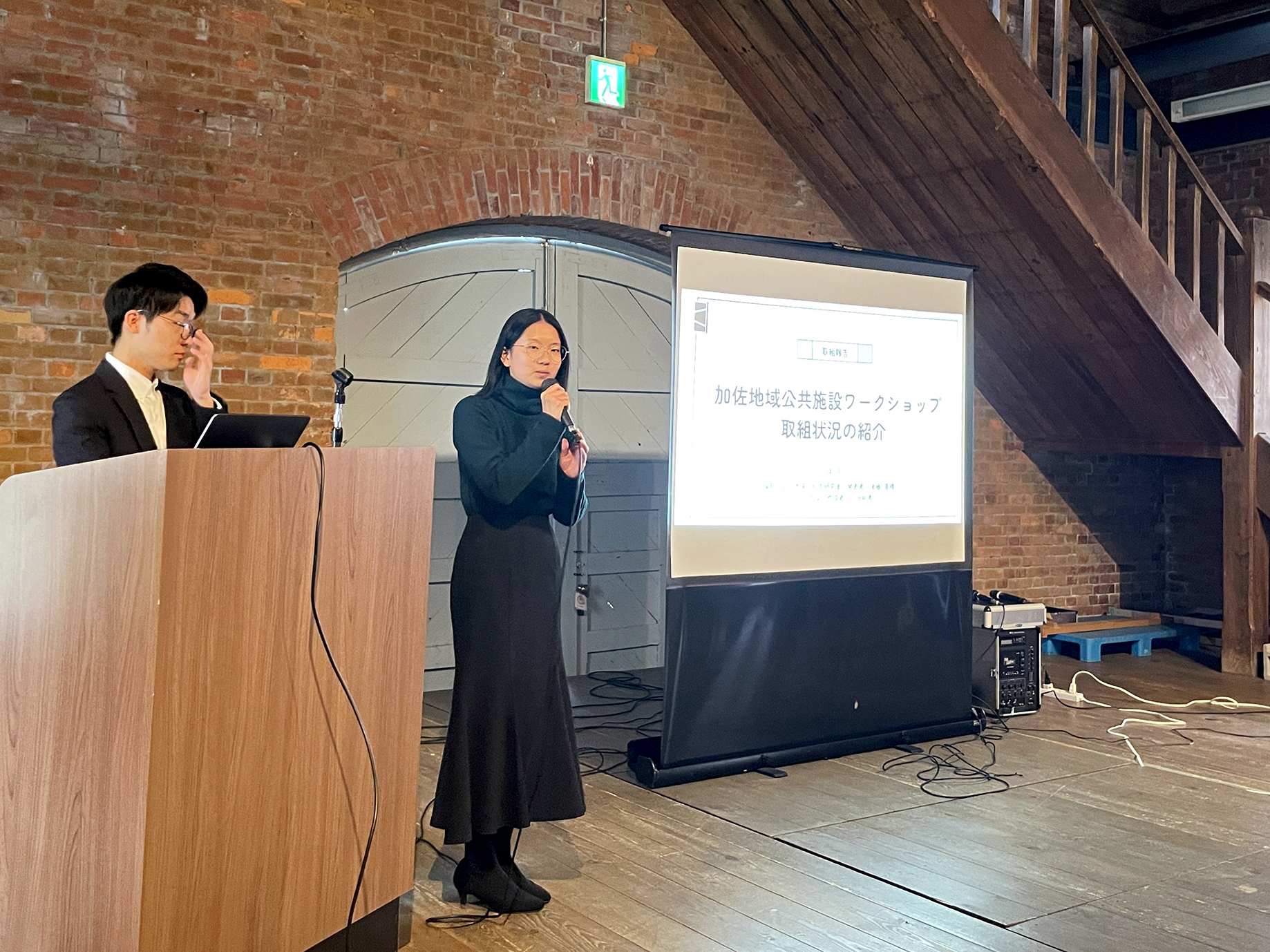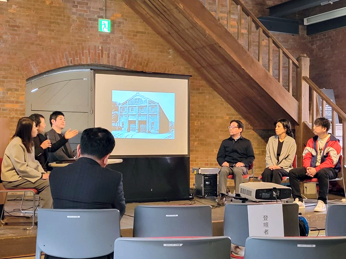 2025年3月20日(木)、「舞鶴市公共施設マネジメントシンポジウム2025―みんなでつくる未来の公共施設のカタチ―」が舞鶴赤れんがパーク4号棟で開催され、杉岡秀紀准教授と本学の学生が登壇しました。このシンポジウムは、市内の公共施設を取り巻く現状を市民の皆さまにお知らせし、将来のあり方について共に考える機会を創出することを目的に、今年初めて開催されたもので、当日は約70~80名の参加がありました。