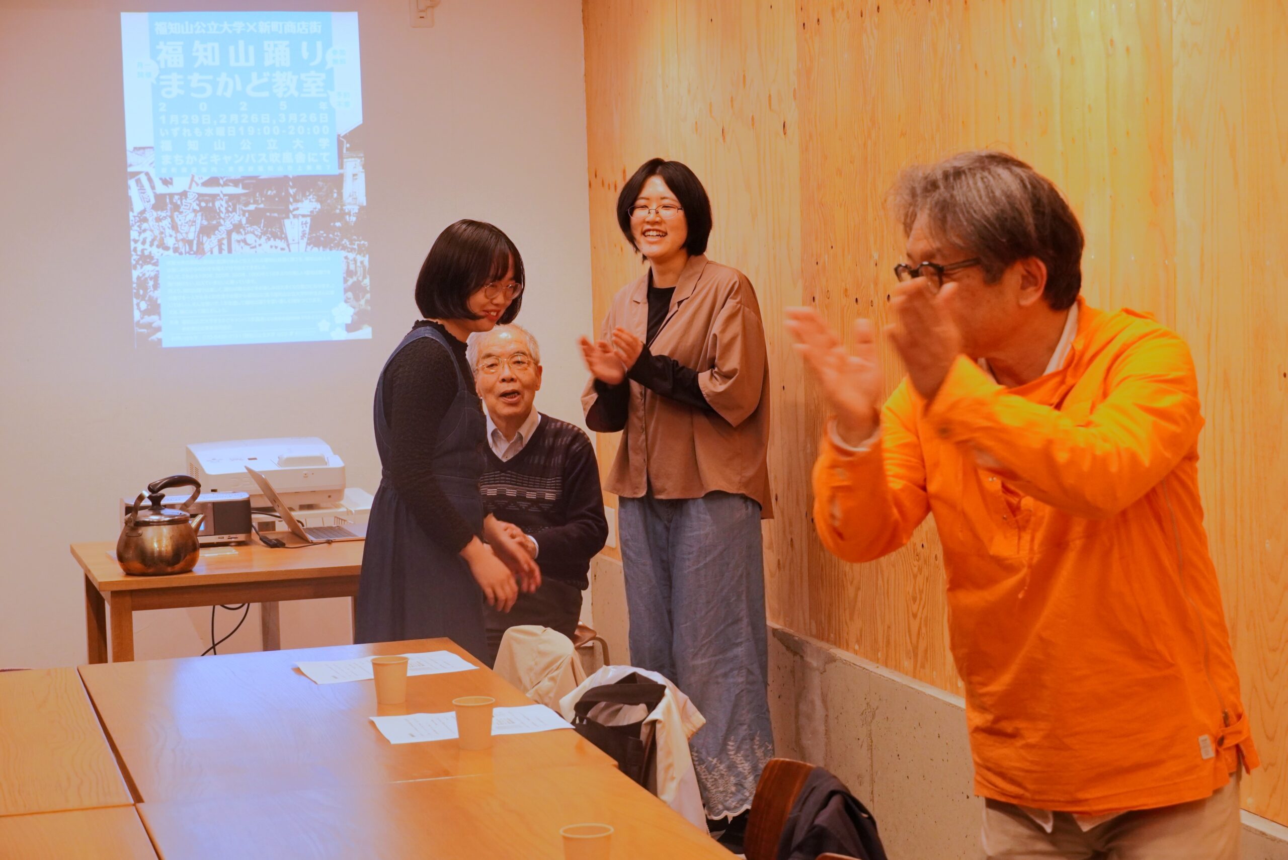 2025年3月26日(水)本学のまちかどキャンパス吹風舎で「福知山踊り まちかど教室」を実施し、谷口知弘教授と学生2人が参加しました。