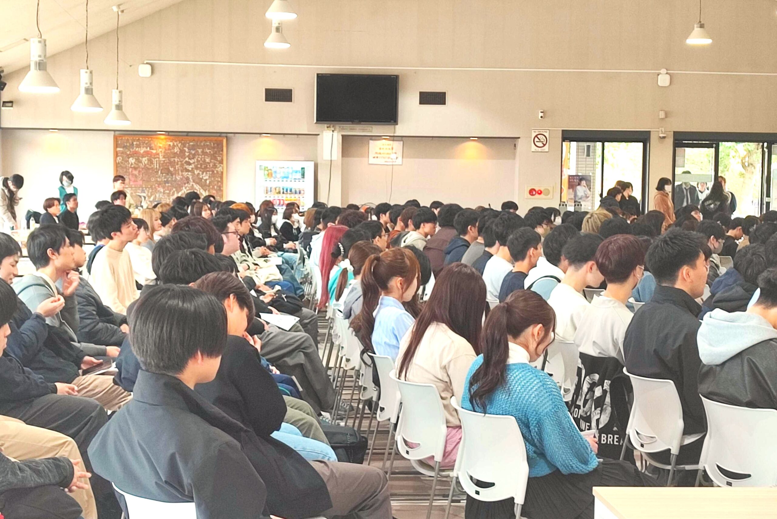 2025年4月5日(土)、学友会執行部主催の「新入生歓迎会 2025」を本学で開催し、地域経営学部105名、情報学部101名の新入生が参加しました。