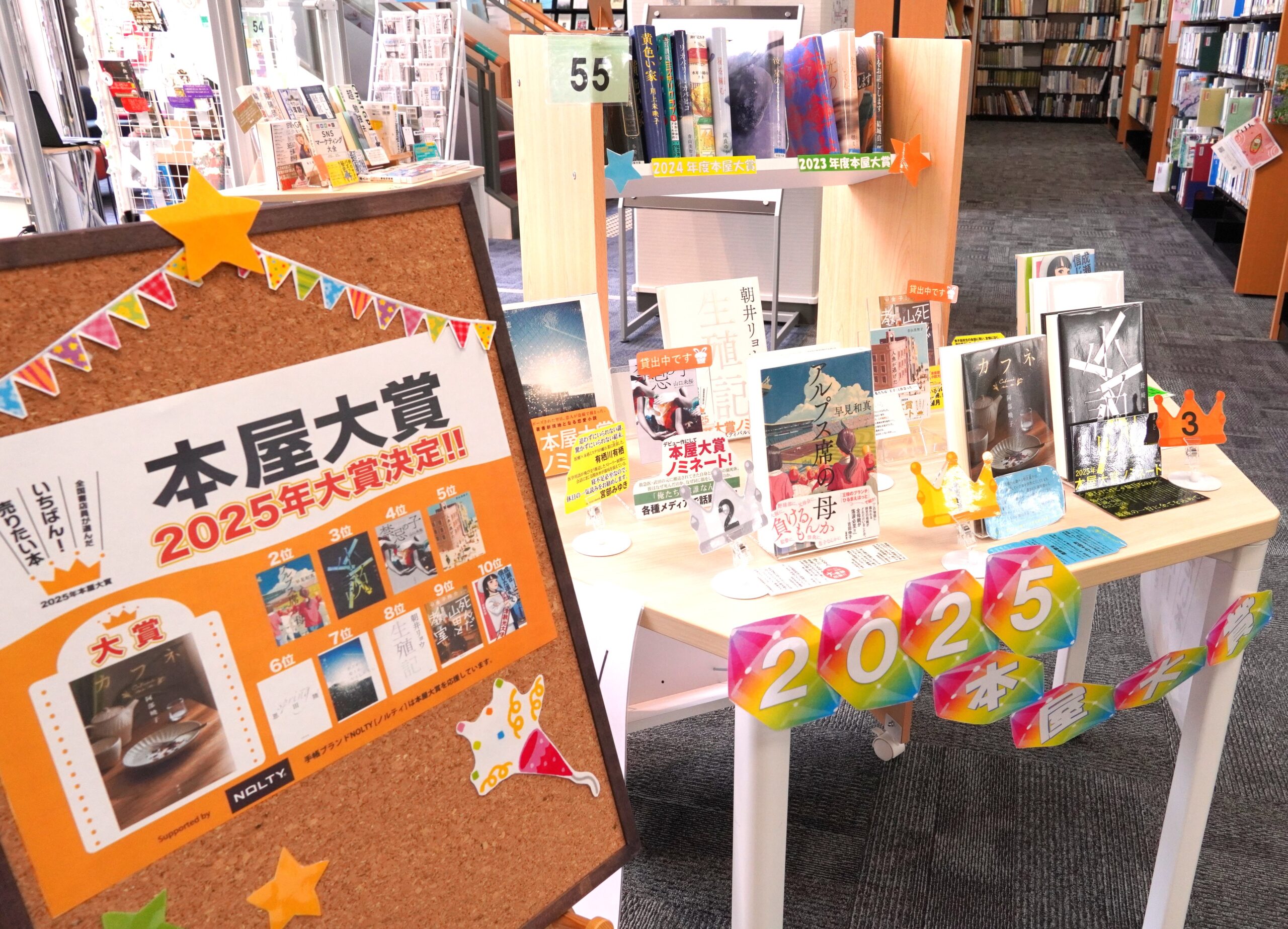 また、4月9日に発表された注目度の高い”本屋大賞”の大賞作品、ノミネート作品の企画展示も行っております。